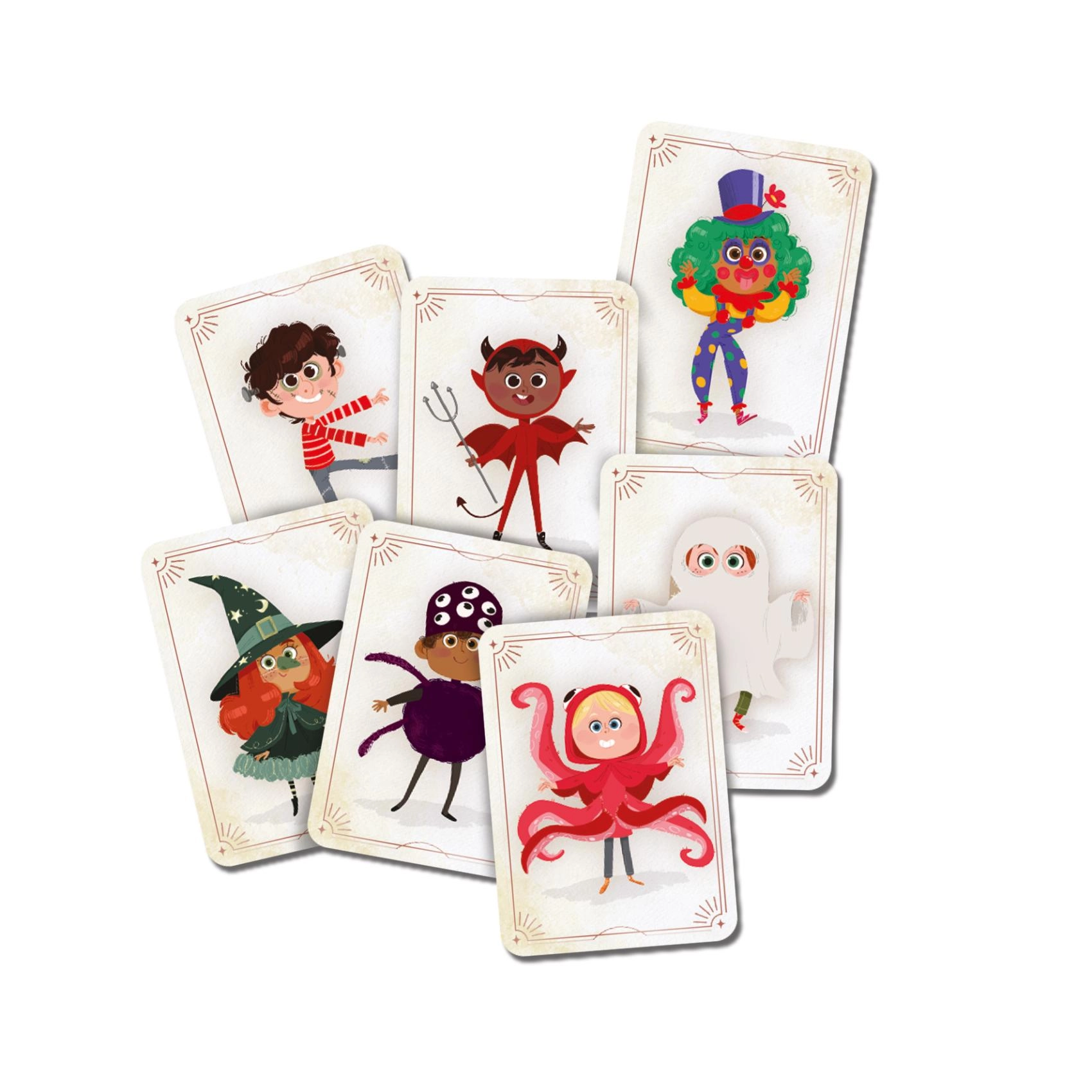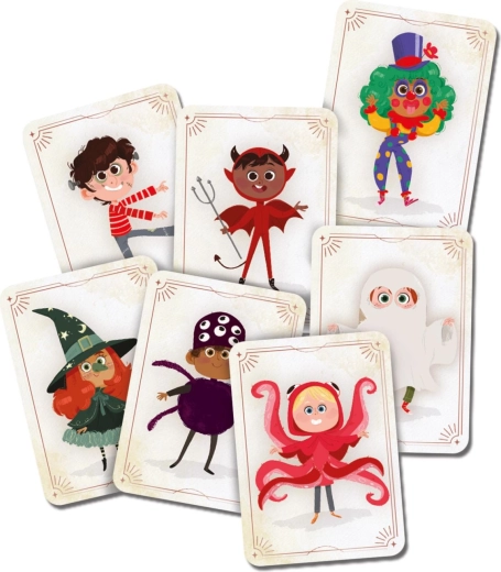 - Vizualno privlačne karte – kostumi čarovnice, okostnjaka, pošasti in drugih likov bodo navdušili otroke.