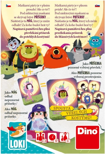 Zabavna družinska igra za otroke od 5 let, v kateri vadijo spomin in pozornost. Vživite se v vlogo maga ali pošasti, spremljajte barvite kostume in razkrijte, kdo se skriva za masko. Hiter igralni čas približno 10 minut, idealno za zabave, izlete in popoldneva s prijatelji. Za 2–6 igralcev.