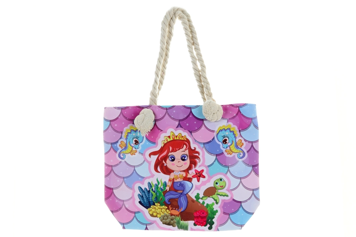 Ta platnena torbica s čudovitim motivom Morske deklice združuje praktičnost in igriv dizajn. Zahvaljujoč gumirani, omyjlivi sprednji strani zlahka odstranite nečistoče, zato torbica dlje ostane kot nova. Mere pribl. 27,5 × 22 cm so popolne za drobnarije, telefon, denarnico in ključe.