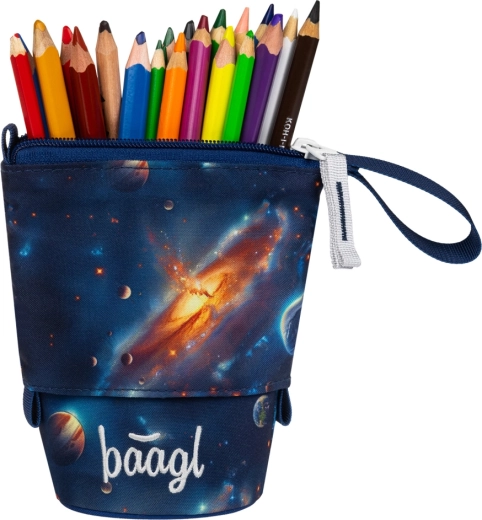 Odkrijte praktičen in trajnosten peresnik, ki raste s potrebami šolarjev. Pastelkovnik Baagl Vesolje združuje moderen dizajn, funkcionalnost in vzdržljivost v enem. Čvrsta, vodoodporna konstrukcija odlično drži obliko in zanesljivo ščiti svinčnike, barvice in flomastre na poti v šolo in med poukom.