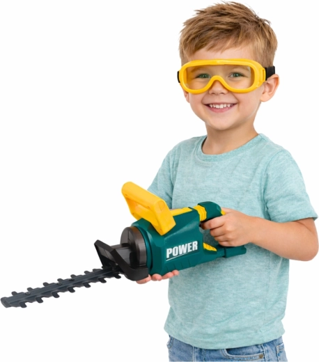 Otroške škarje za živo mejo so zasnovane za varno in privlačno igro. Lahka konstrukcija iz trpežne plastike, ergonomski ročaj in privlačna barvna izvedba omogočajo dober oprijem tudi mlajšim otrokom. Premično rezilo verodostojno posnema rezanje, medtem ko lučke in zvoki igri dodajo realističen pridih.