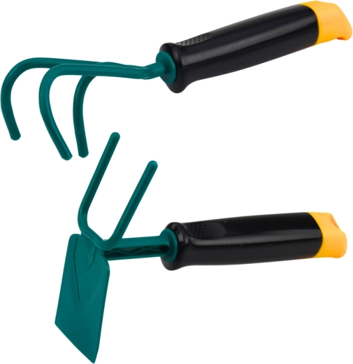 Lopatka, grablje in kultivator z vzdržljivimi glavami ter nedrsečimi zaključki pomagajo otrokom varno kopati, rahljati in pleti. Zasnovano za udoben oprijem in boljši nadzor.