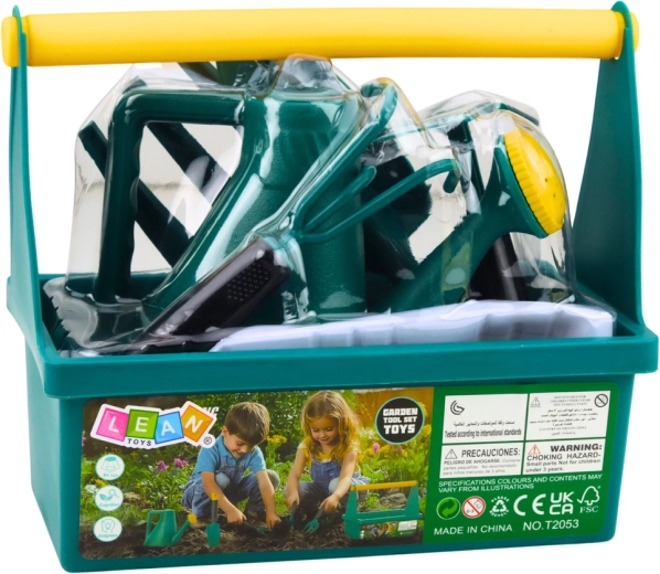 - Popolna oprema za igro vrtnarja: zalivalka, lopatka, grablje, kultivator, motička/klešče, prenosna škatla.
