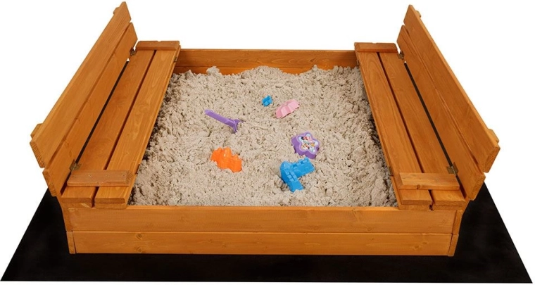 Dve nasprotni klopci se po igri preprosto preklopita in zapreta celoten prostor peskovnika. Pesek ostane čist in zaščiten pred živalmi ter nečistočami.