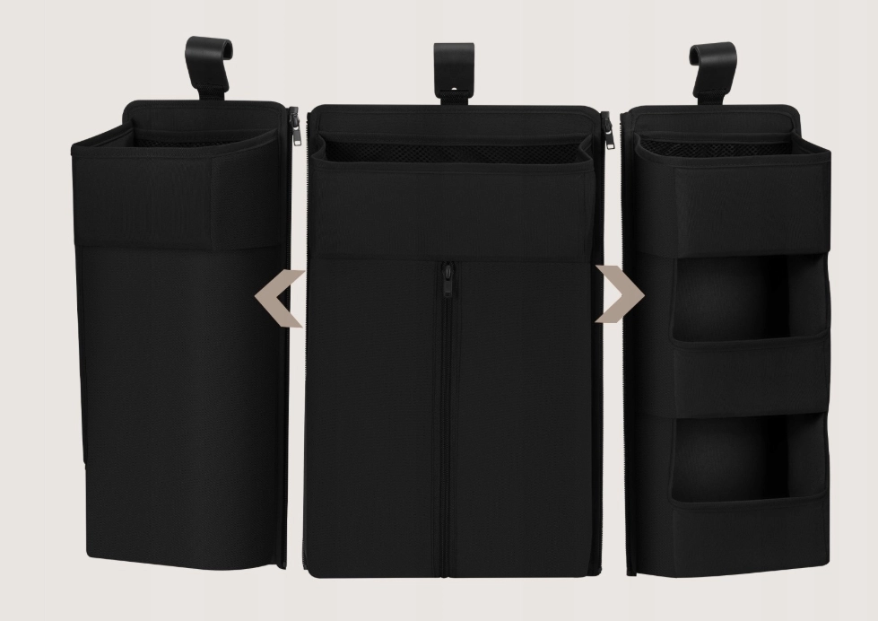Pametna zasnova s tremi neodvisnimi deli omogoča prilagoditev razporeditve vašim potrebam. Žepi različnih globin in širin sprejmejo pleničke, vlažilne robčke, stekleničke, kreme, igrače in druge večje predmete. Za drobnarije ali vrednejše dodatke je tu prostoren žep na zadrgo, ki jih varno hrani.