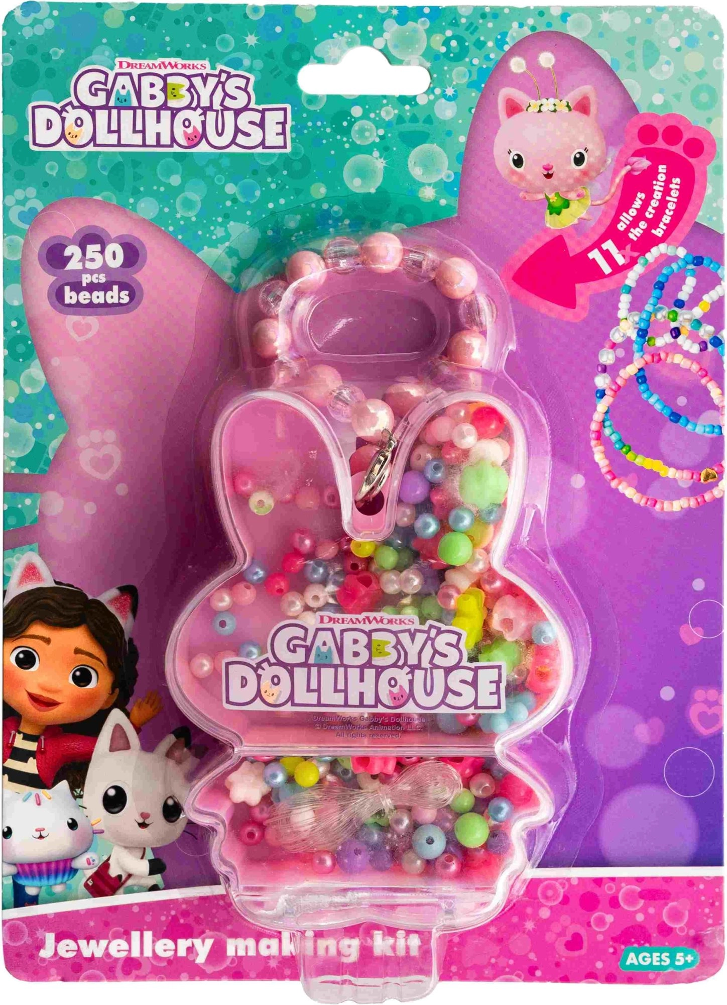 Komplet perl Astra – Gabinina čarobna hiška bo navdušil vse male oblikovalke nakita. Praktična škatlica za nakit v obliki ljubkega zajčka je idealna za pregledno shranjevanje in enostavno prenašanje, zato lahko ustvarjanje poteka doma ali na poti.