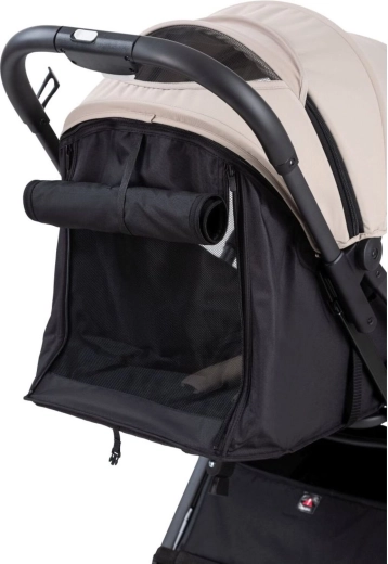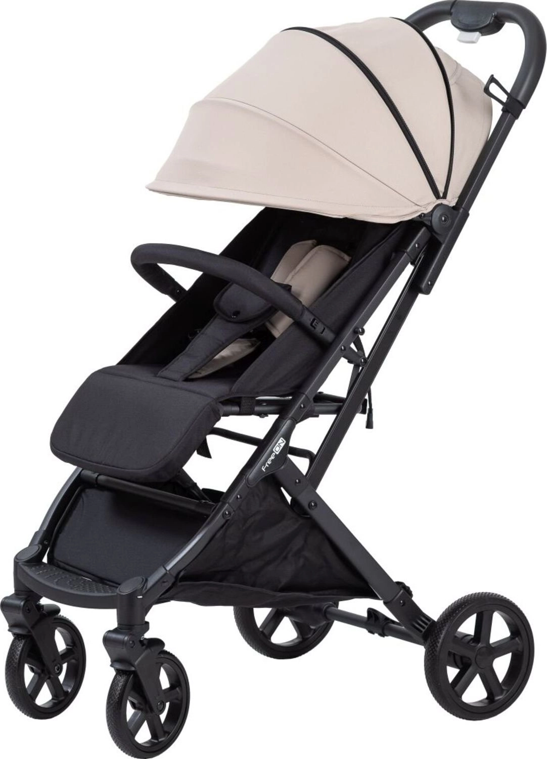 Športni voziček FreeON Tao Beige združuje udobje za otroka in starše. Nastavljiva strehica z okencem ščiti pred soncem in vam omogoča, da imate otroka ves čas na očeh, medtem ko nastavljivo naslonjalo s mrežico ter nastavljiva opora za noge zagotavljata udobje med spanjem in budnostjo. Vzmetenje vseh štirih koles in zadnja zavora poskrbita za tekočo in varno vožnjo v mestu in parku.