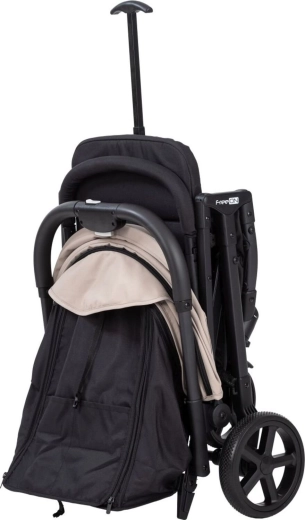 Voziček zložite v kompakten obliko, zahvaljujoč integriranemu naramnemu pasu ali teleskopskemu ročaju pa ga lahko udobno prenesete ali vlečete kot prtljago.