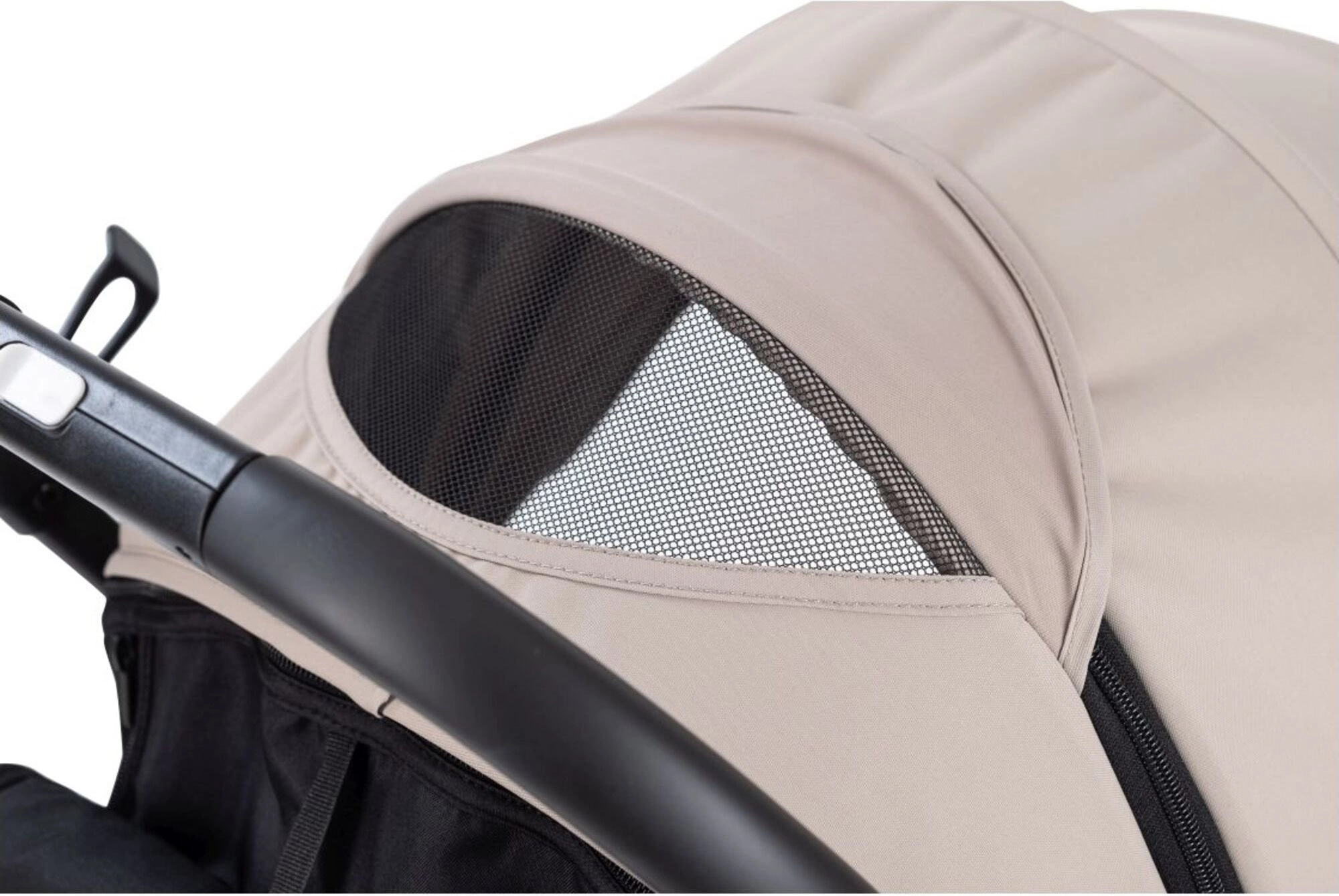 Nastavljiva strehica z mrežastim okencem zagotavlja kroženje zraka in omogoča, da imate otroka pod nadzorom tudi med vožnjo.