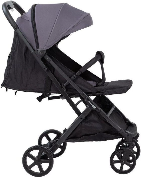 Športni voziček FreeON Tao Grey združuje sodoben dizajn, varnost in enostavno upravljanje. Zahvaljujoč vzmetenim kolesom in zadnji zavori se udobno vodi po mestnih pločnikih in lažjem terenu. Otroku zagotavljajo udobje nastavljivo naslonjalo z mrežico za boljše prezračevanje, nastavljiv naslon za noge in pettočkovni pasovi. Nastavljiva strehica z okencem ščiti pred soncem in omogoča, da imate malega potnika vedno pod nadzorom.