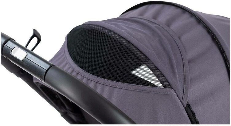 Nastavljiva strehica z okencem omogoča nadzor nad otrokom in nudi zaščito pred soncem, medtem ko zračni panel izboljša kroženje zraka.