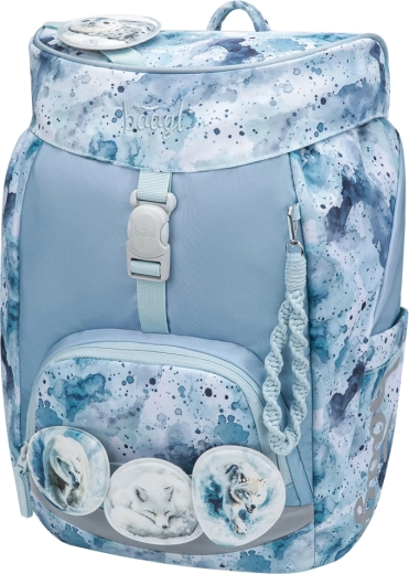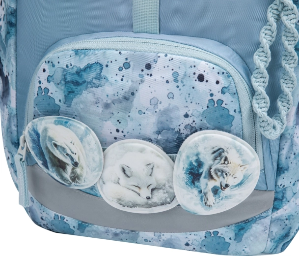 Notranja enoprekatna zasnova z žepom in elastiko za pritrditev map olajša organizacijo šolskih pripomočkov. Nahrbtnik je izdelan iz recikliranih, vodoodpornih materialov in opremljen z odsevnimi elementi za boljšo vidnost v mraku in dežju. Preprosto in varno zapiranje Magnetic Click zlahka obvlada vsak prvošolec, medtem ko odstranljive značke (patches) omogočajo spreminjanje videza glede na razpoloženje.