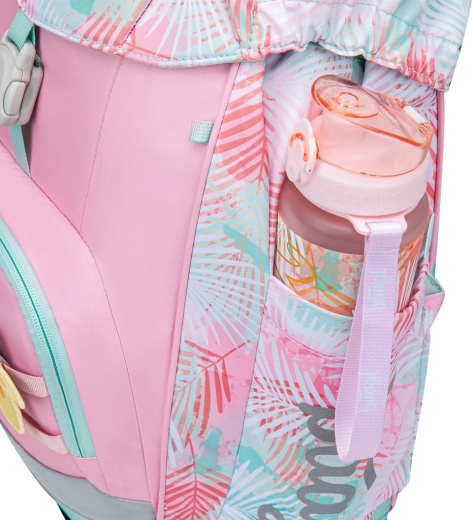 Praktična razporeditev prostora vključuje glavni predal z organizatorjem, lahke zaščitne deske za zvezke in sprednji termo žep za malico, ki dlje ohranja živila sveža. Zračna podloga, nastavljive naramnice, prsni trak in tudi snemljiv ledveni pas podpirajo stabilnost in zdravo držo telesa. Varnost povečujejo odsevni elementi, vzdržljivost pa zagotavlja vodoodbojen recikliran material s certifikatom GRS.