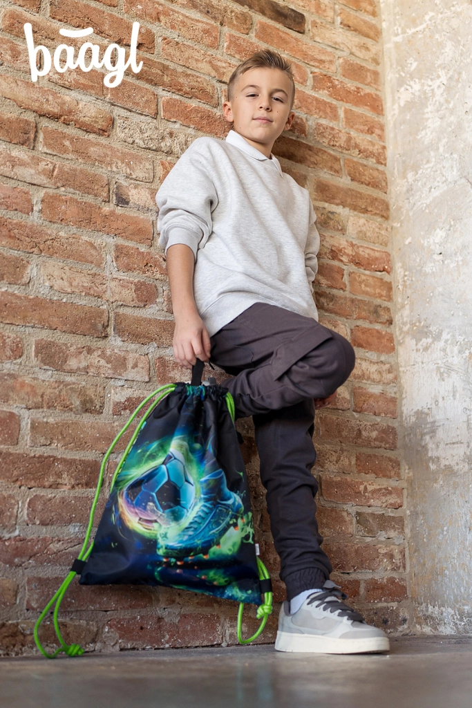 Šolski komplet BAAGL Airy Plus Nogomet – nahrbtnik, peresnica, vrečka, predpasnik in denarnica
