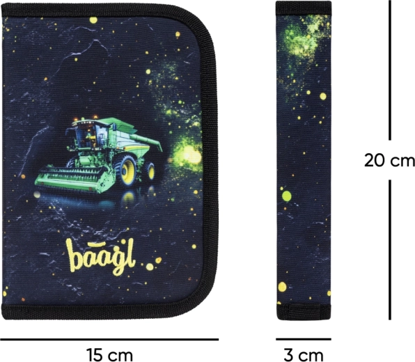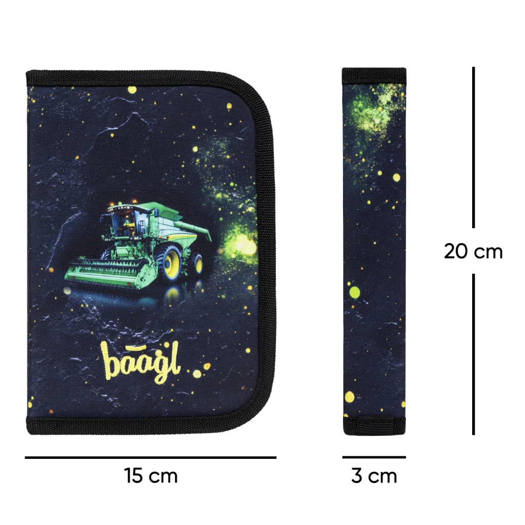 Šolski peresnik Baagl z atraktivnim motivom traktorja je idealna izbira za učence, ki iščejo trpežno in pregledno shranjevanje pisal. Enonadstropna zasnova z dvema preklopoma in kakovostna zadrga YKK zagotavljata enostavno in zanesljivo vsakodnevno uporabo.