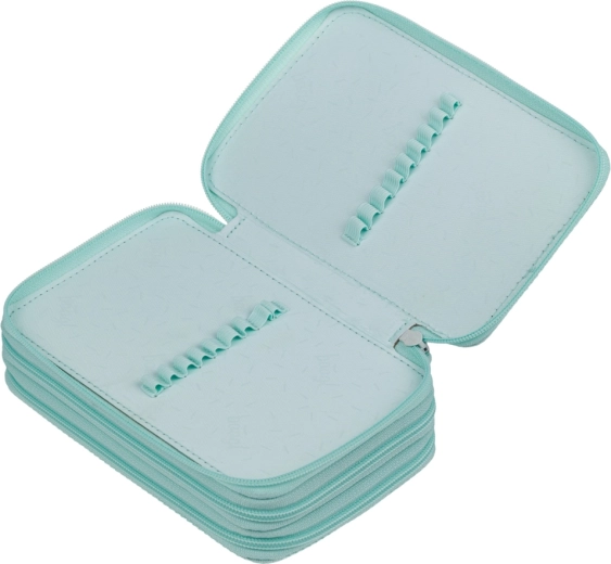 Tri ločeni predelki zagotavljajo dovolj prostora za vse pisalne pripomočke in dodatke. Pregledna razporeditev prihrani čas vsak šolski dan.