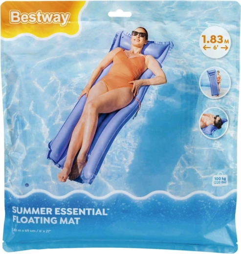 Uživajte poletje na vodi z napihljivo blazino BESTWAY v dimenzijah 183 × 69 cm. Zahvaljujoč odpornemu PVC, vgrajenemu vzglavniku in segmentiranim komoram ponuja stabilno udobje pri sprostitvi v bazenu, jezeru ali ob morju. Je lahka, enostavna za prenašanje in se hitro napihne ter izpihne; v paketu je priložen tudi samolepilni popravljalni obliž.