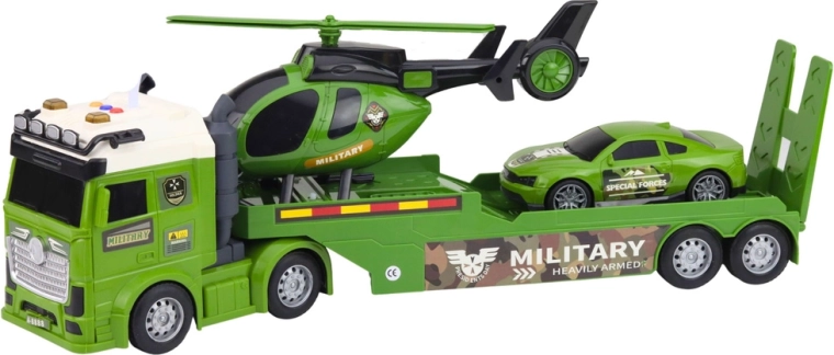 - Tovorno vozilo s prikolico, vojaški helikopter, vojaški avto