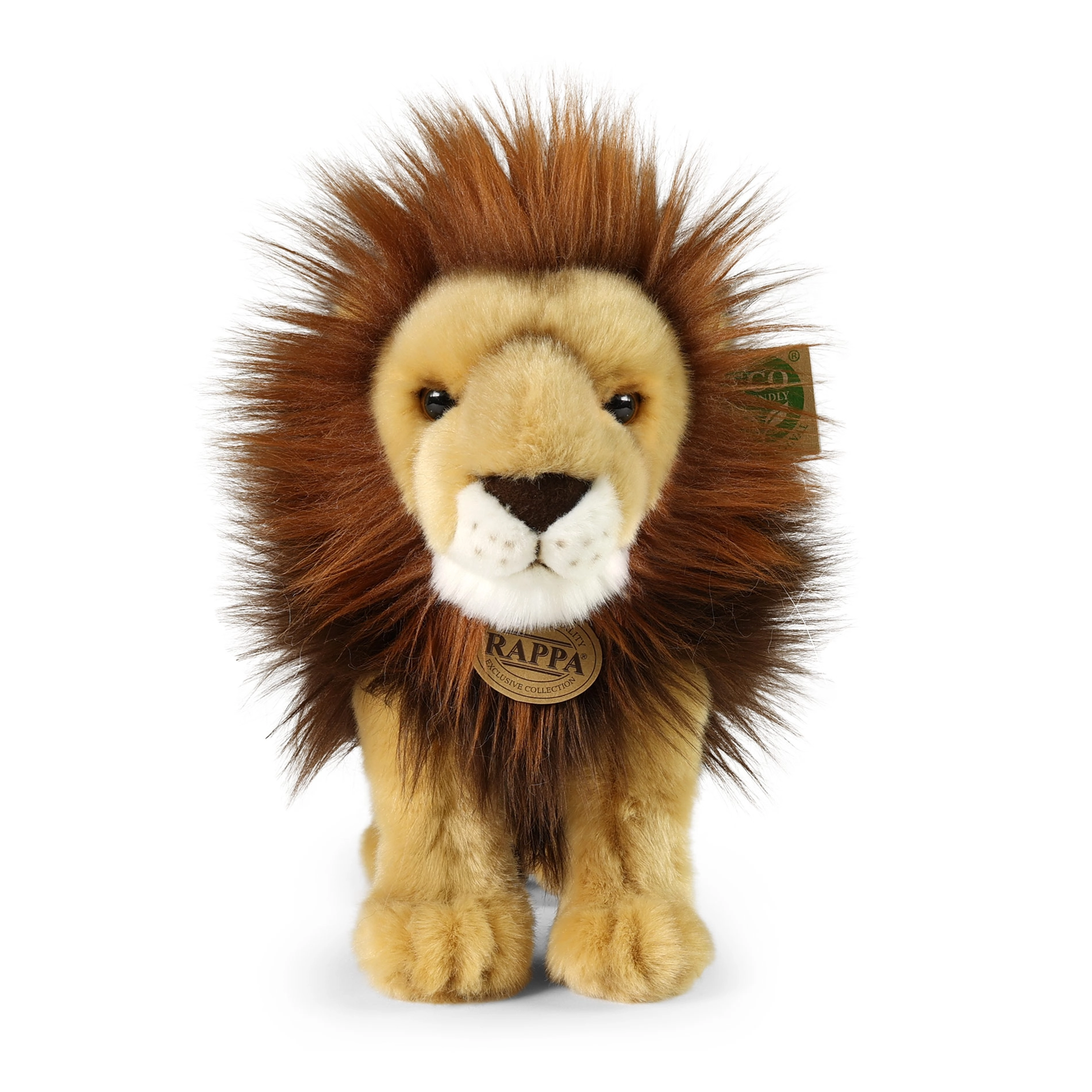 Podrobna izdelava, puhasta temna griva in verne proporcije naredijo plišastega leva prepričljivega sopotnika za igro in dekoracijo.