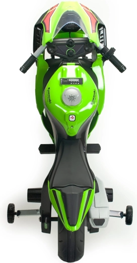 Uradna licenca KAWASAKI z dirkaškimi oklepi, vetrobranskim ščitnikom in zavornih detajlih za izjemno pristen videz in navdušenje malih voznikov.