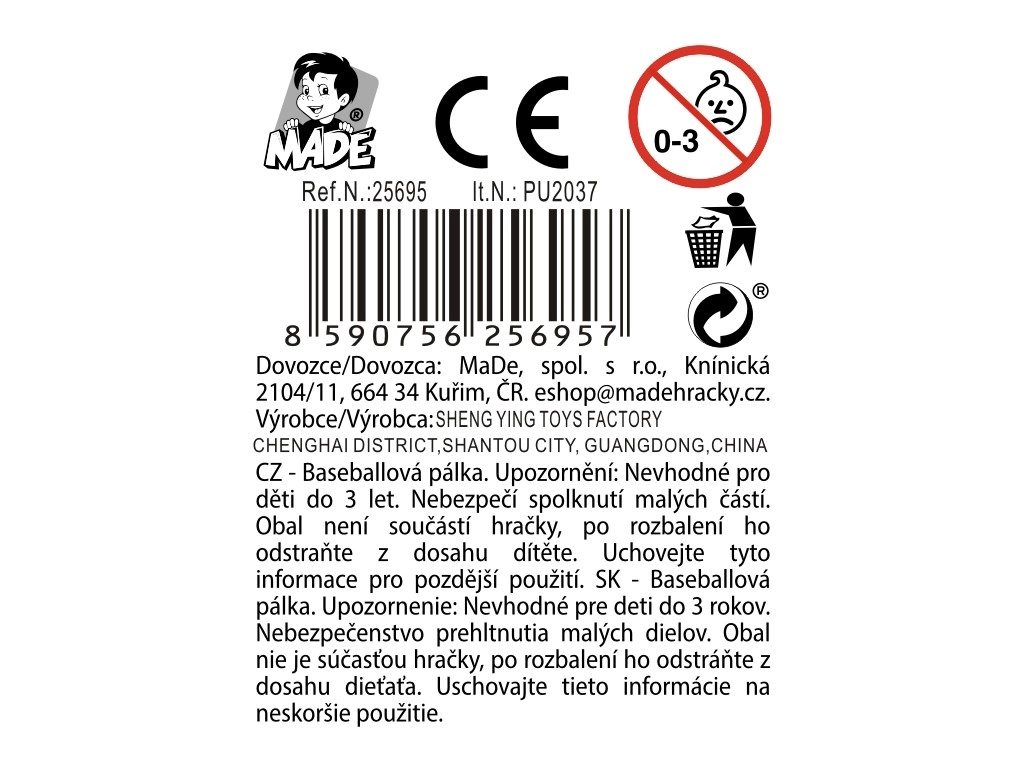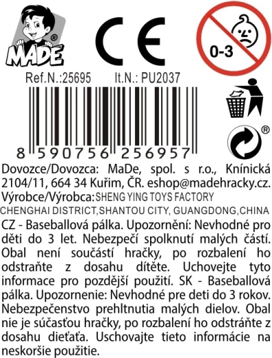 Lahka in trpežna plastična baseball palica dolžine 39 cm je idealna za prve korake v svet baseballa. Odlično ustreza otrokom od 3 let naprej, je varna, enostavna za držanje in ne zahteva nobene dodatne opreme. Na voljo v 3 barvnih različicah, s kompaktnimi merami za udobno igro na prostem in doma ter brez potrebe po baterijah.