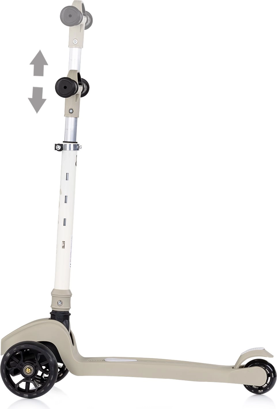 Višinsko nastavljivo T-krmilo se prilagodi postavi otroka za udoben in pravilen oprijem.