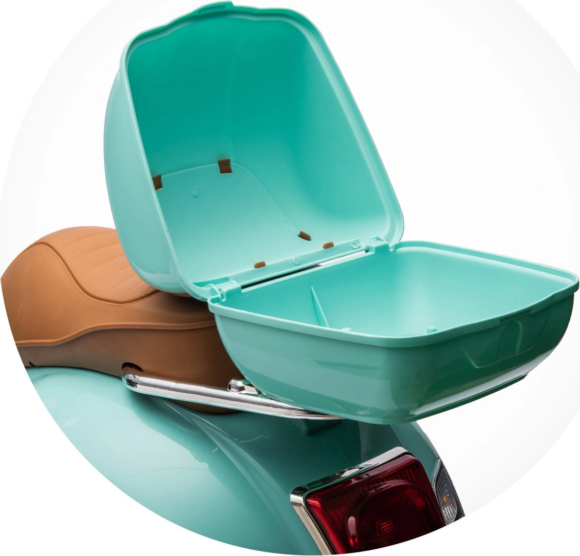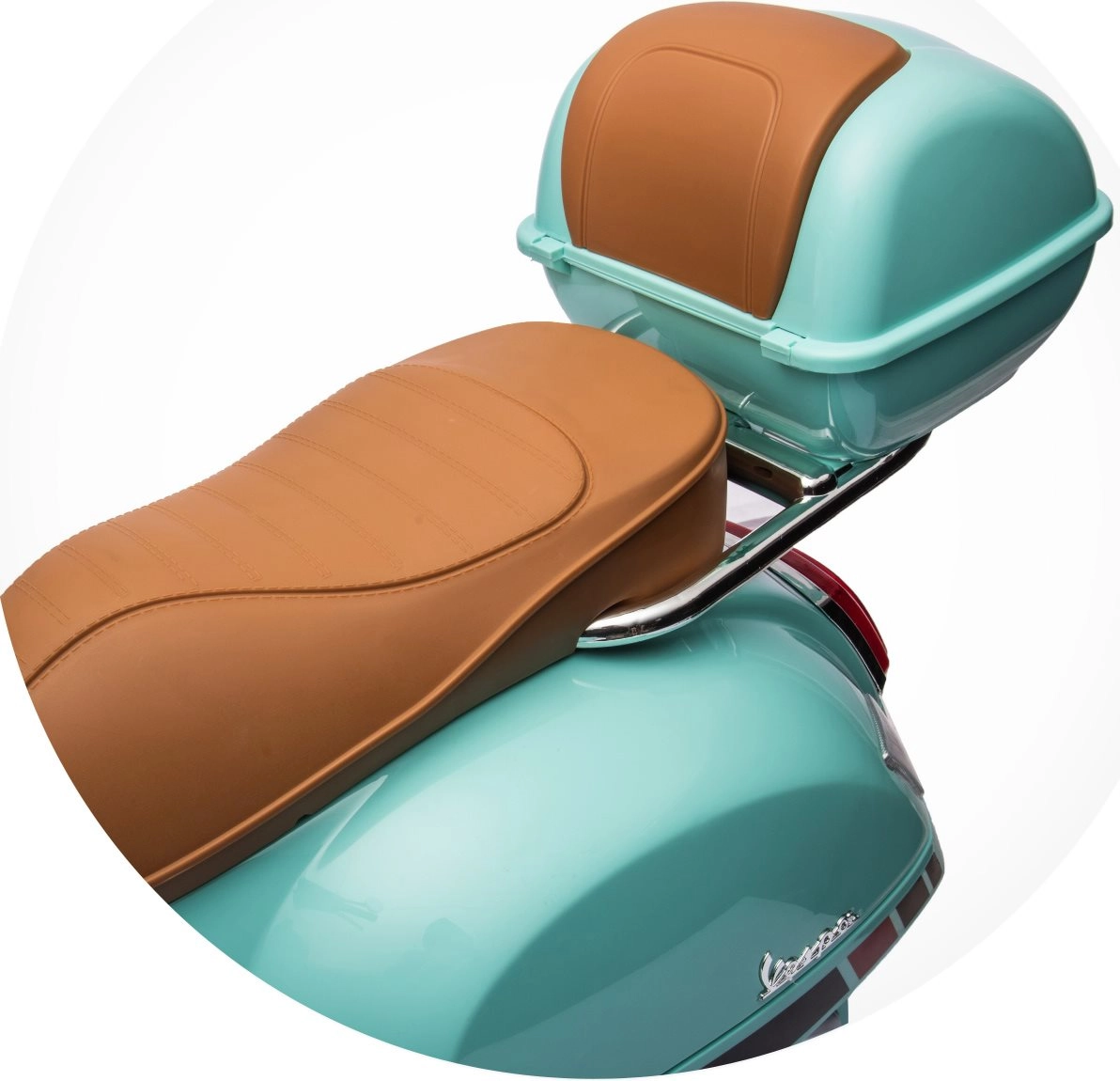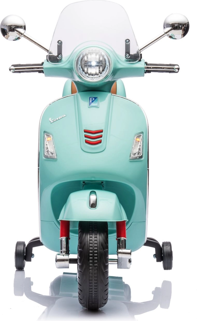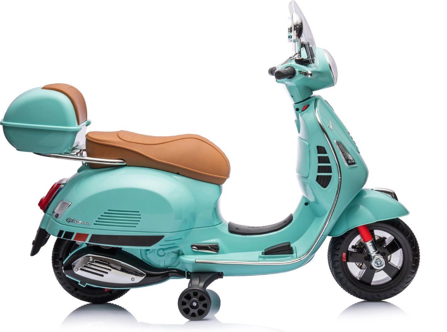 Stiliziran električni otroški motor, navdihnjen z ikonično VESPO GTS, bo malim voznikom všeč zaradi realističnega videza in varne vožnje. Ponuja dva motorja 2 × 30 W, stabilizacijska kolesca, LED luči, udoben sedež iz eko usnja ter glasbeni panel z USB/TF/MP3/AUX. Del paketa sta tudi zadnji shranjevalni box ter svetlobni in zvočni učinki za še več zabave.