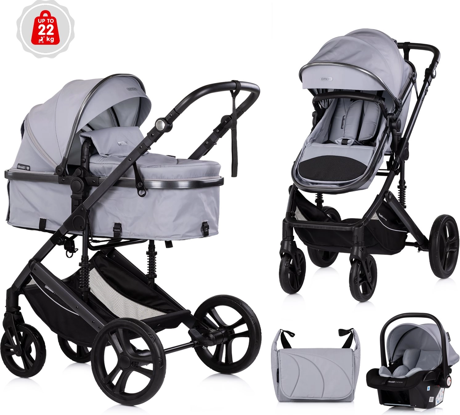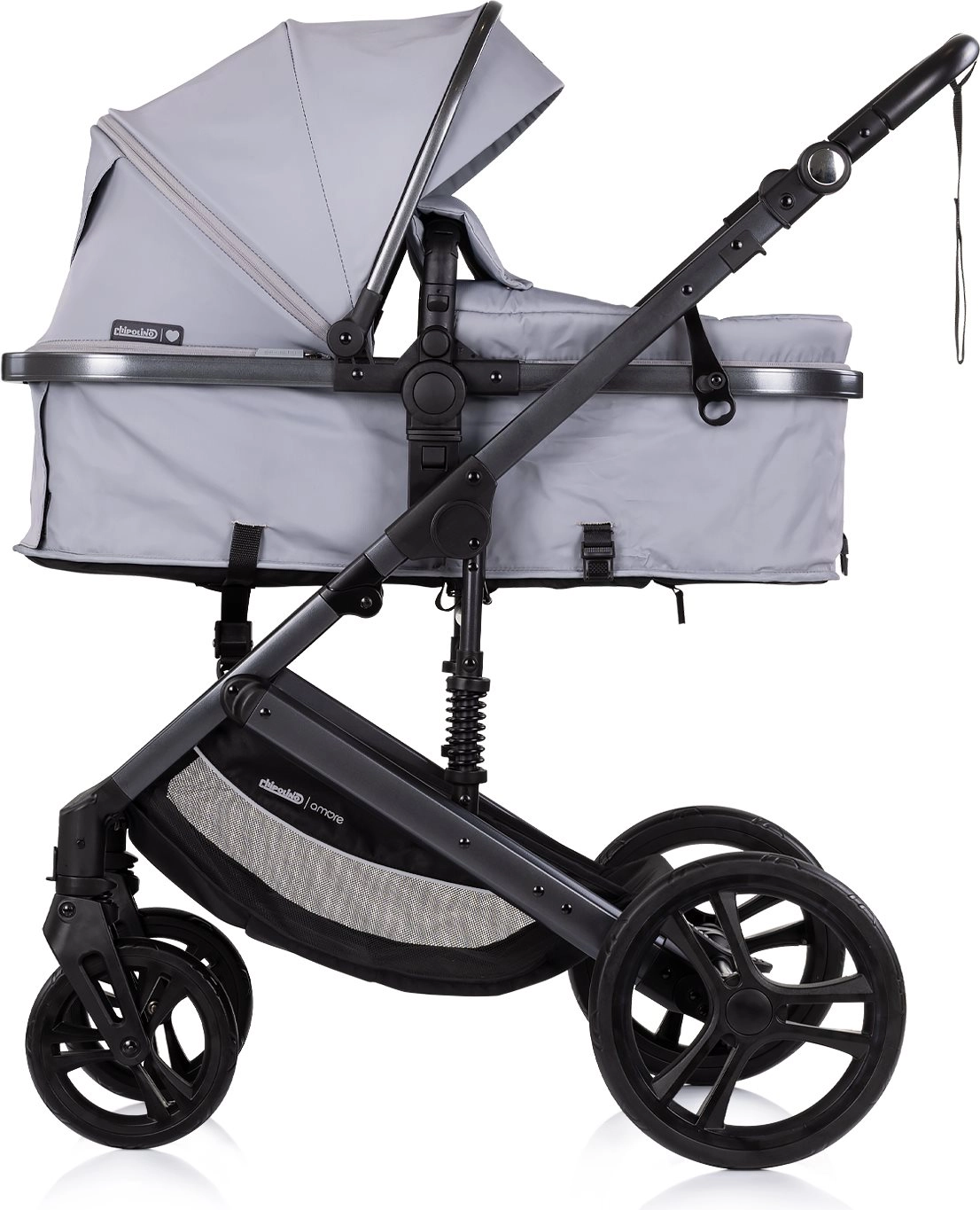 CHIPOLINO Amore 2v1 Platinum je vsestranski voziček, ki raste z vašim otrokom. Zahvaljujoč enostavni pretvorbi športnega dela v globoko košaro je primeren že od rojstva (do 6 mesecev in 9 kg v načinu globoke košare) ter nato kot športni voziček do 22 kg. Lahek in trpežen okvir z vzmetenjem omogoča gladko vožnjo tako v mestu kot v parku.