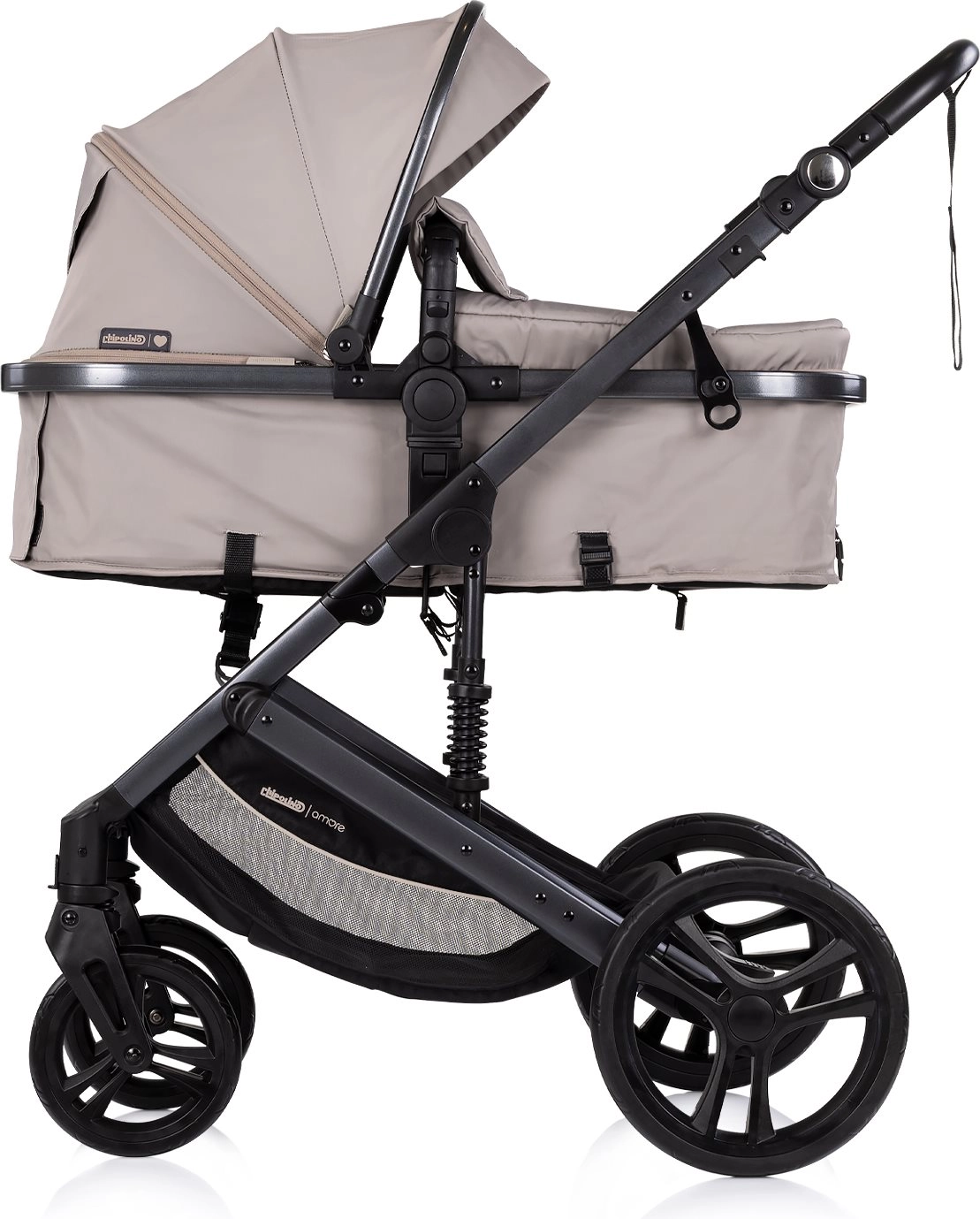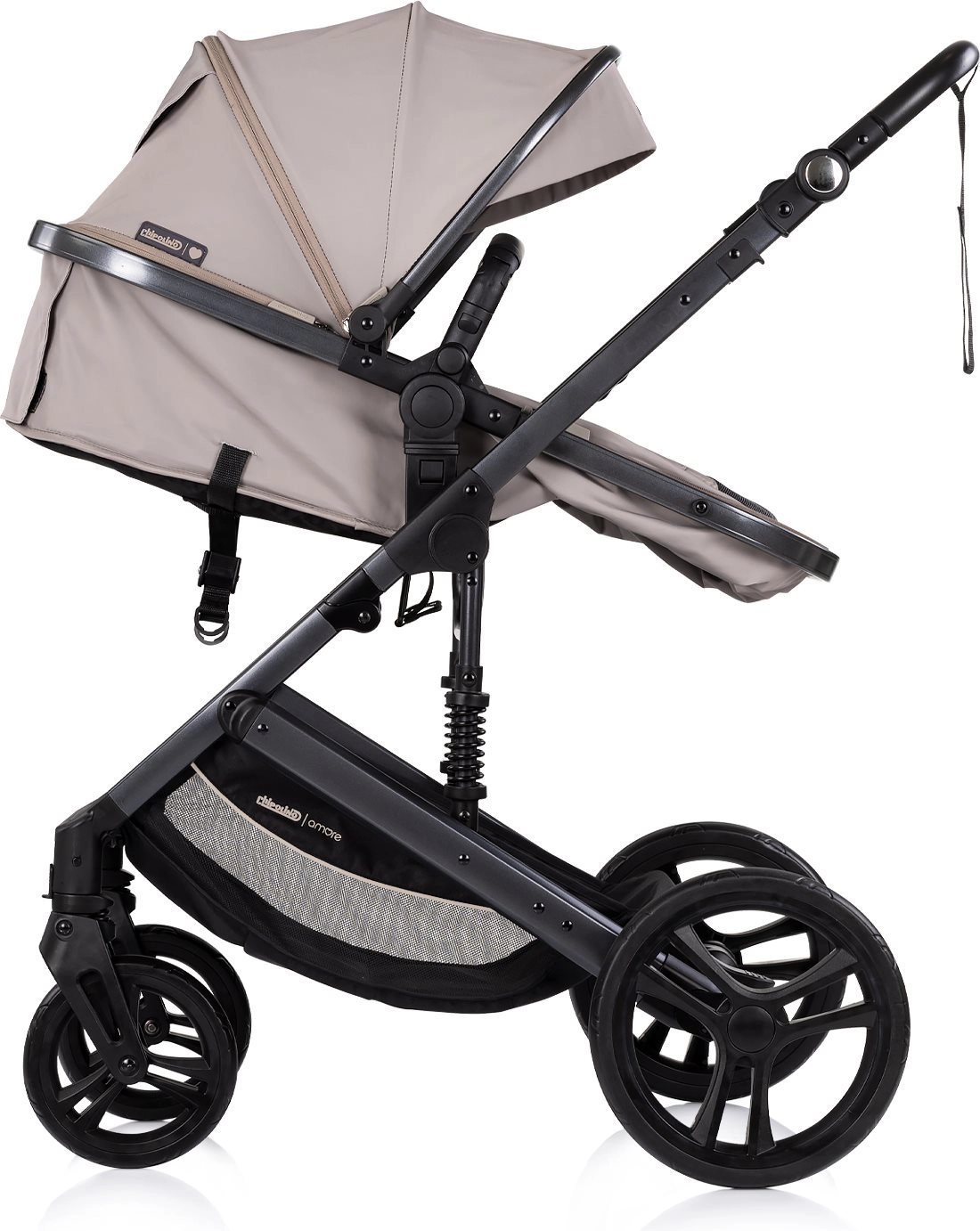 CHIPOLINO Amore 2v1 je eleganten in praktičen voziček, ki raste z vašim otrokom. Zaradi enostavne pretvorbe športnega sedeža v globoko različico je idealen za novorojenčke (do 6 mesecev/9 kg) in večje otroke do 22 kg. Vzmeten okvir poskrbi za gladko vožnjo, medtem ko velika strešica z odstranljivim senčnikom nudi zaščito pred vremenskimi vplivi.