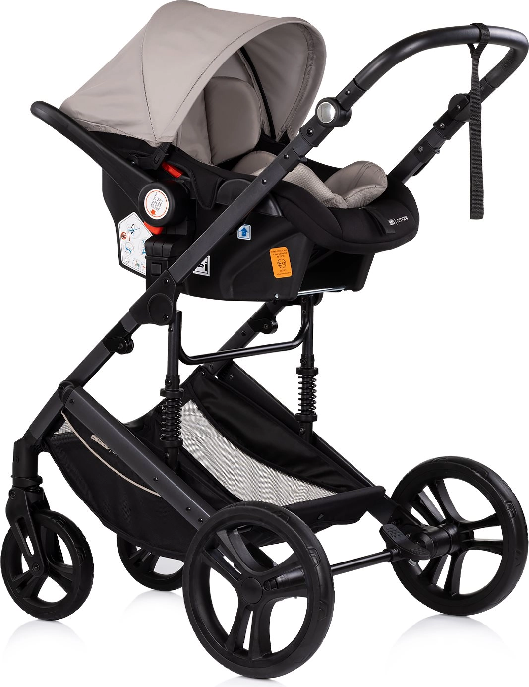 Starši bodo cenili vrtljiv sedež (v smeri in nasproti smeri vožnje), višinsko nastavljiv ročaj iz kakovostnih materialov ter velik shranjevalni koš za vsakodnevne potrebščine. Varnost zagotavljajo 5-točkovni pas z oblazinjenjem, odstranljiv varovalni lok in zanesljiva verižna zavora na zadnjih kolesih.