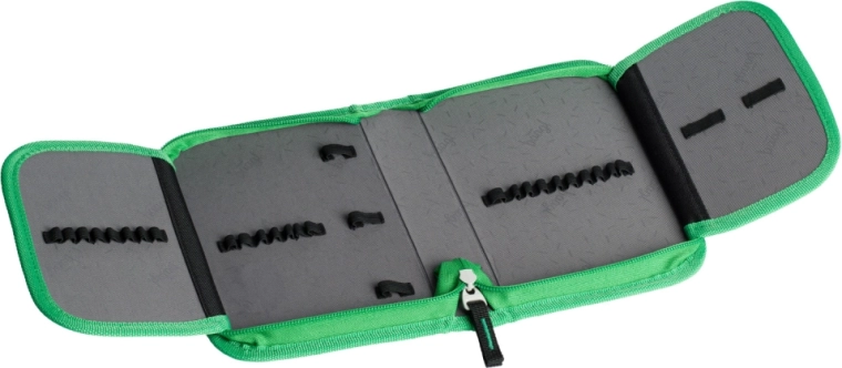 Premišljena oprema za šolo in krožke – enonadstropna peresnica z dvema preklopoma (brez polnila) ohranja red v pisalih. Vreča za obutev s karabinom za pripenjanje na aktovko ima praktičen spodnji žep na zadrgo in močne vrvice za nošenje na hrbtu. Otroški predpasnik iz pralnega materiala z dvema žepoma je idealen za likovno vzgojo in delovne dejavnosti. Denarnica za okoli vratu z imenovko, nastavljivo vrvico z varovalom in zapiranjem na ježka varno shrani drobiž, čip in ključe.