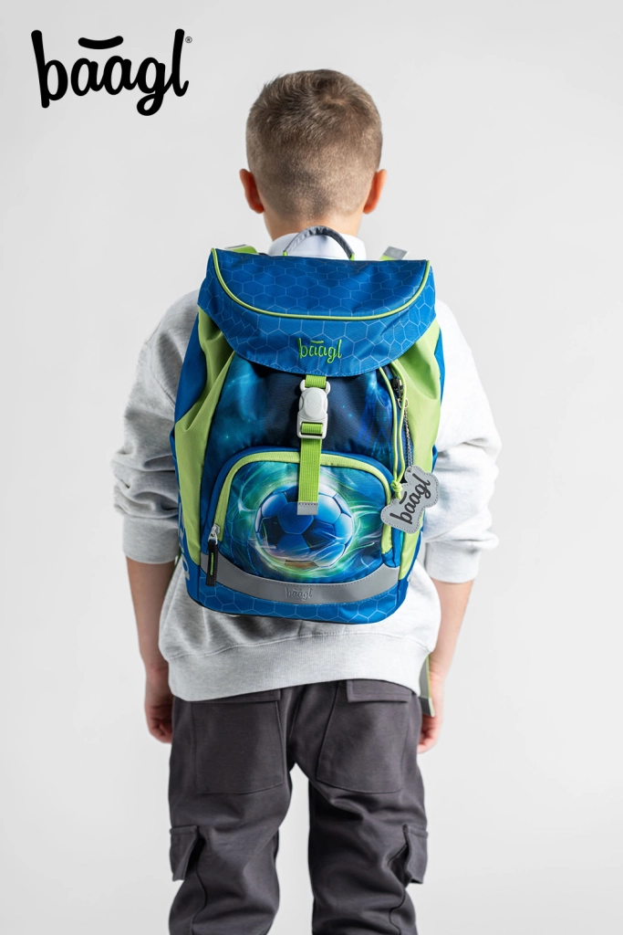 Kompleten šolski set za male nogometaše vsebuje ultra lahek nahrbtnik BAAGL AIRY, enonadstropno peresnico, vrečo za obutev, otroški predpasnik in denarnico za okoli vratu. Zahvaljujoč ergonomsko oblikovanemu hrbtišču z AIRFLOW ERGO SISTEMOM, prsnim in ledvenim pasom ter teži le 750 g je nahrbtnik idealen že od 1. razreda. Set ponuja vodoodporne materiale, odsevne elemente za varnost in praktične rešitve za vsak šolski dan.