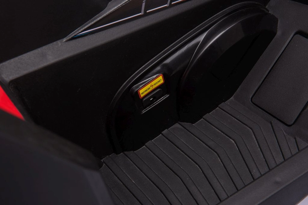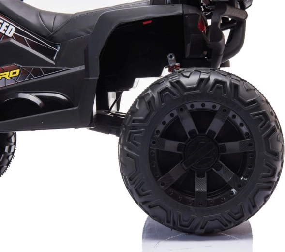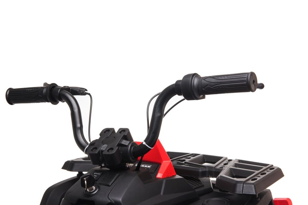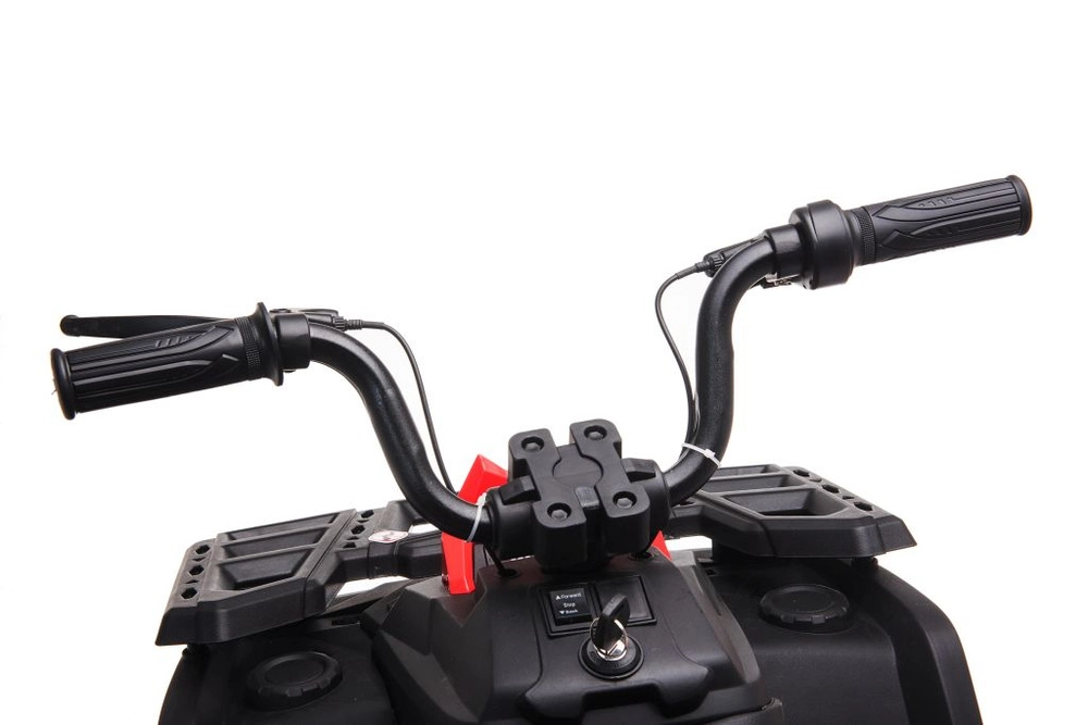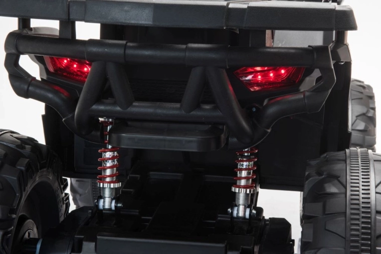 Robusten otroški električni štirikolesni motor s širokimi terenskimi kolesi, stabilno konstrukcijo in realističnimi LED lučmi prinaša veliko zabave na vrtu in na trdnih podlagah. Preprosto upravljanje z balanco, udoben sedež z naslonom za hrbet in stikalo naprej/stop/nazaj zagotavljajo varno in zabavno vožnjo.