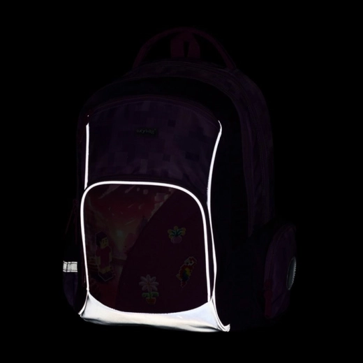 Trdno nepremočljivo dno ščiti vsebino pred vlago in umazanijo, odsevni elementi povečajo vidnost na poti v šolo. Set dopolnjuje praktična vreča za telovadbo z zatezanjem na vrvice ter pregleden enonadstropni peresnik z dvema preklopoma in zankami za pisala.