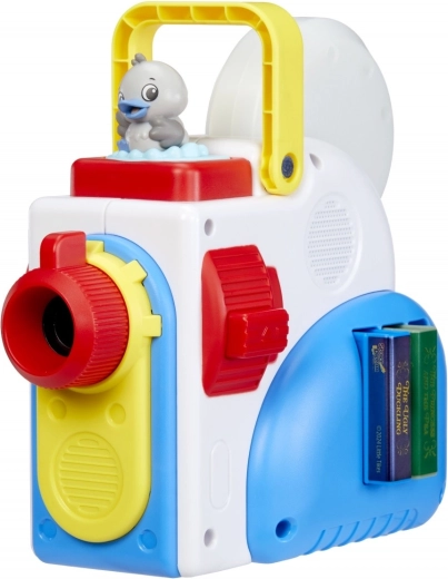 Projektor prikazuje ilustracije na steno in hkrati predvaja pripoved in zvoke. Otroci lahko gledajo slike, poslušajo zgodbo in skupaj vadijo branje.