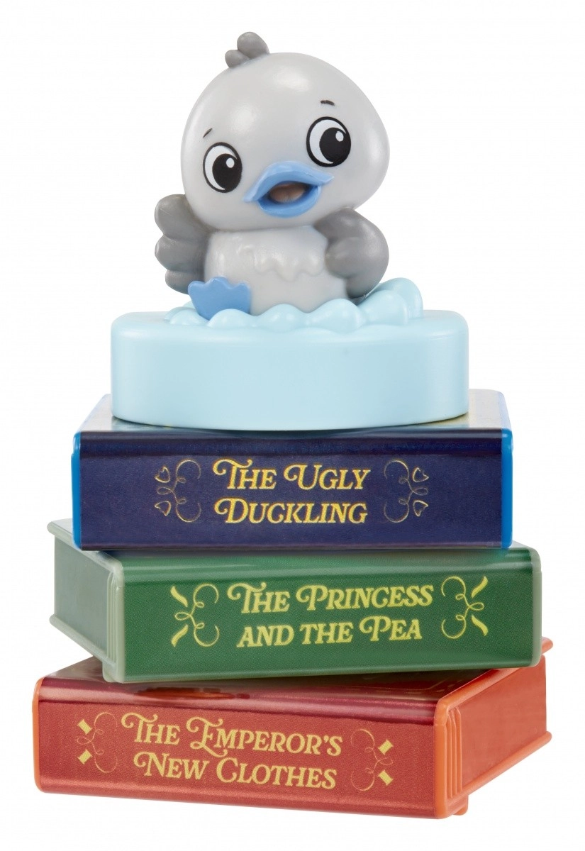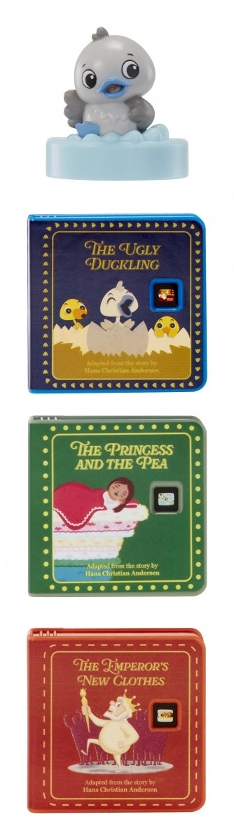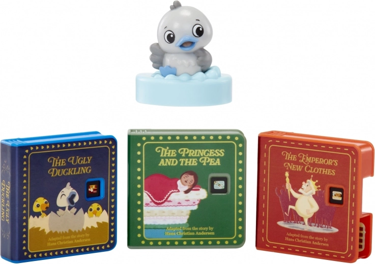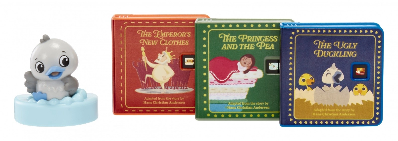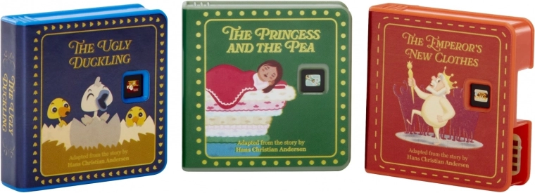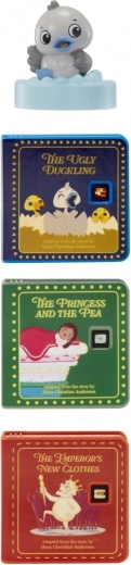 V paketu dobite 3 klasične pravljice: Grdo rače, Princeska na zrnu graha in Cesarjeva nova oblačila, ter prisrčno figurico račke iz Grdega račka, ki v načinu lučke ustvarja dodatne svetlobne učinke. Razširljiva knjižnica zgodb ponuja dodatne naslove, ki jih je mogoče kupiti posebej. Priporočena razdalja projiciranja je 0,6–1,8 m za oster in berljiv prikaz.