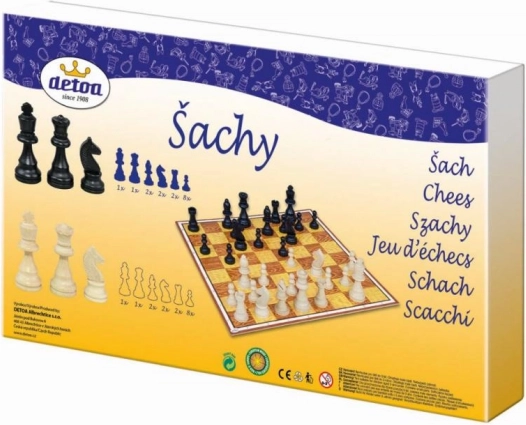 Klasični šah znamke Detoa z 32 lesenimi figurami in trdnim igralnim poljem iz trdega papirja. Odličen za razvoj logičnega in taktičnega razmišljanja, za zabavo celotne družine in prvo spoznavanje otrok s strategijo. Varni izdelek, ki izpolnjuje standarde EU, primeren od 3 let.