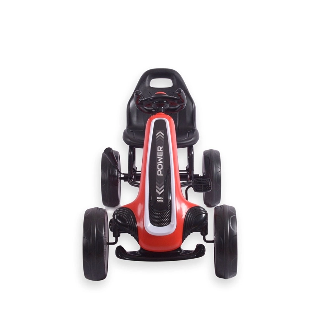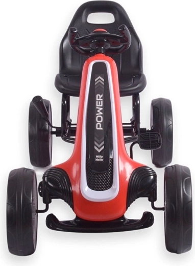 Pedalni gokart MILLY MALLY Power je idealna izbira za otroke od 3. leta dalje, ki imajo radi gibanje in hitro zabavo. Lahek kovinski okvir v kombinaciji z vzdržljivimi plastičnimi deli zagotavlja dolgo življenjsko dobo, medtem ko popolnoma ohičen verižni pogon in funkcija prostega teka prispevata k varni in tekoči vožnji.