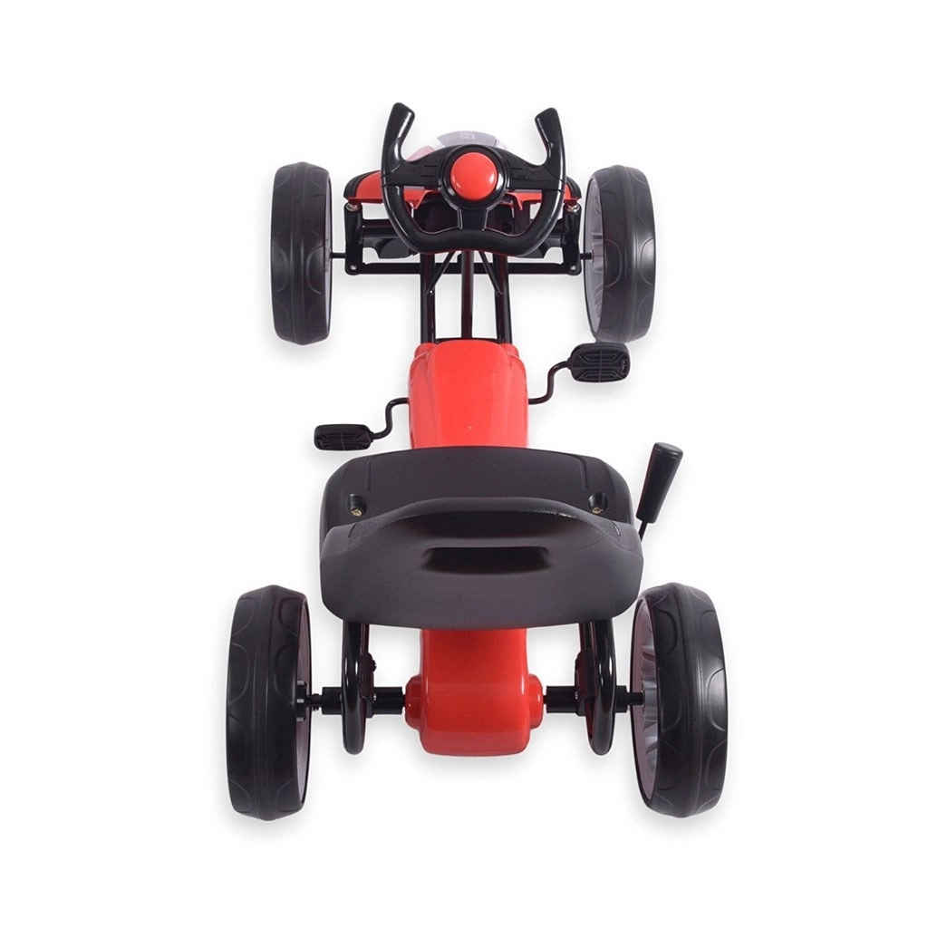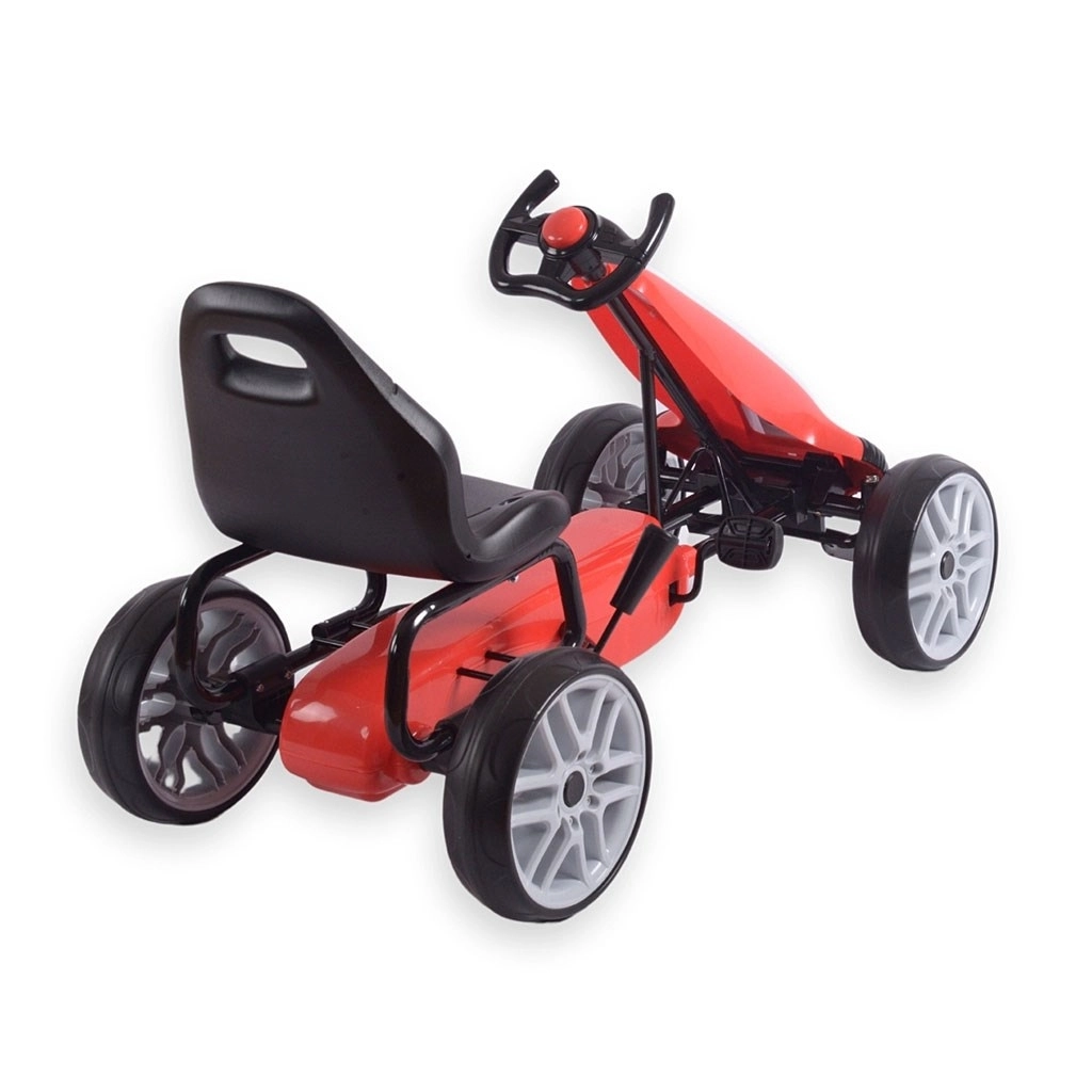 Privoščite otrokom dinamično vožnjo s pedalnim gokartom MILLY MALLY Power v rdeči barvi. Robustna kovinska konstrukcija, velika EVA kolesa z ležaji, ročna zavora in nastavljiv sedež zagotavljajo varnost, udobje in odlično zabavo na svežem zraku.