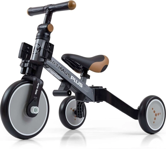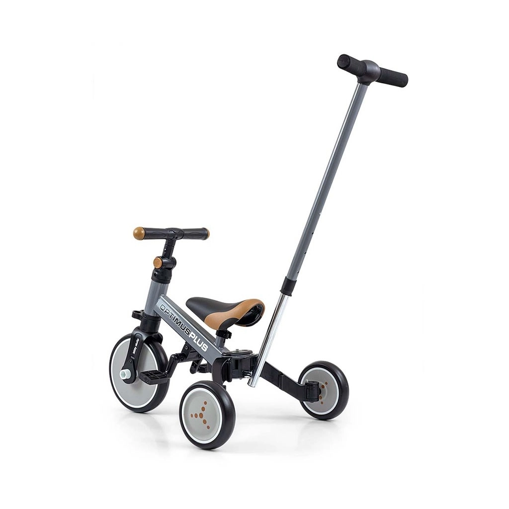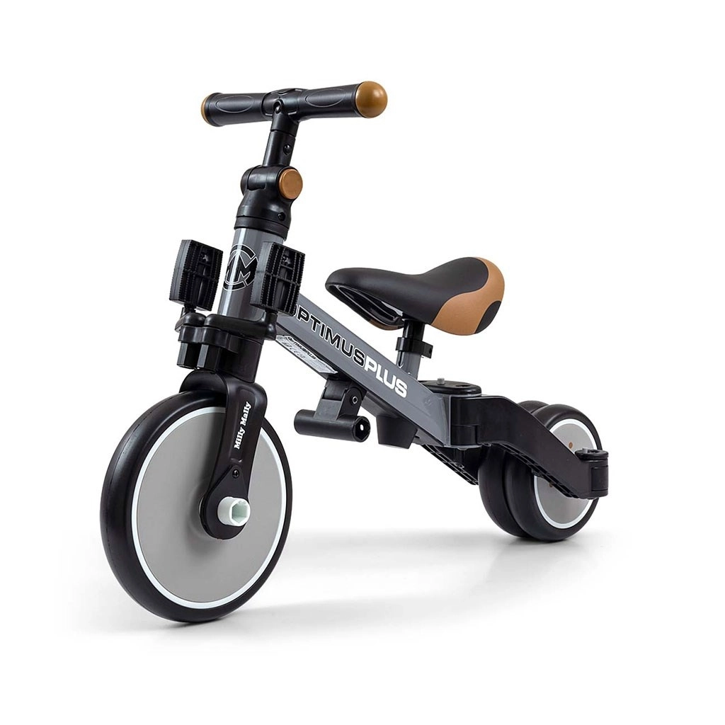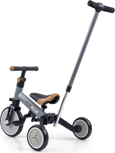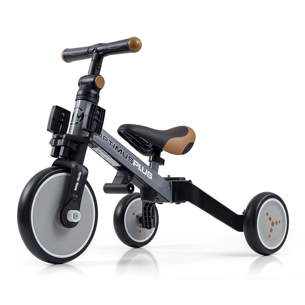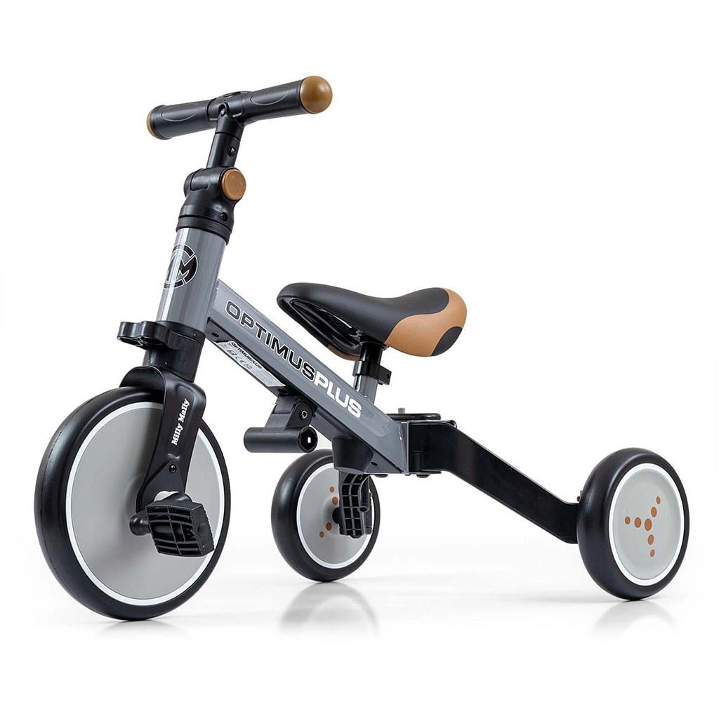 Tricikel 4v1 MILLY MALLY OPTIMUS PLUS je zasnovan za lažje prve vožnje ter razvoj koordinacije in ravnotežja. Prilagodljiva zasnova omogoča hiter prehod med načini: osnovni tricikel brez pedal, tricikel s pedali na sprednjem kolesu in preprost poganjalec. Zahvaljujoč penastim kolesom je vožnja tiha, udobna in z dobrim oprijemom na različnih podlagah.