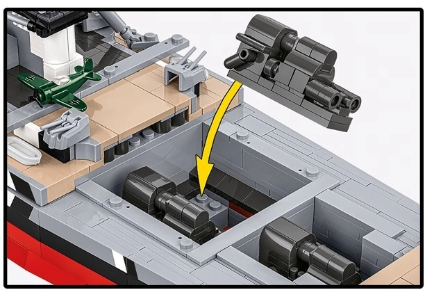 Ikona pomorske zgodovine v obliki modela BISMARCK prinaša monumentalno izkušnjo gradnje in razstavljanja. Zahvaljujoč verno upoštevanim proporcem, podrobni nadgradnji in oborožitvi izstopa v vsaki zbirki. Vsa označevanja in detajli so trajnostno natisnjeni neposredno na elemente, zato bo model ohranil dovršen videz dolga leta.