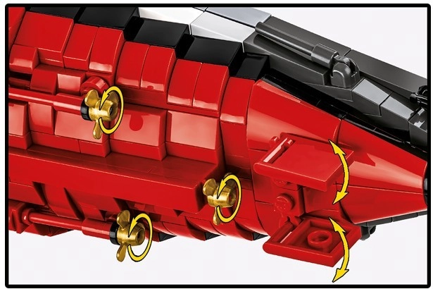 Gradbeni set združuje realistične funkcije (vrtljive kupole, premične elemente, odstranljive dele pogonskega sistema) s pametno konstrukcijo in intuitivnimi navodili, zaradi katerih je tudi tako velik projekt tekoč in zabaven. Priloženo je elegantno stojalo z napisno tablico za varno in reprezentativno razstavljanje.