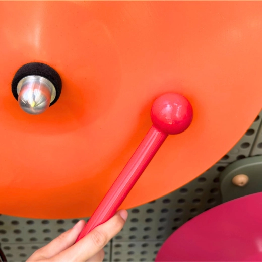 Ta komplet treh kontrastno obarvanih tolkalskih krožnikov (oranžen, zelen, rožnat) vsak prostor spremeni v glasbeno območje, kjer otroci razvijajo občutek za ritem, sodelovanje in samopredstavitev. Vsak krožnik oddaja različen značilen zvok, kar otrokom omogoča enostavno razlikovanje tonov in ustvarjanje lastnih glasbenih sekvenc.