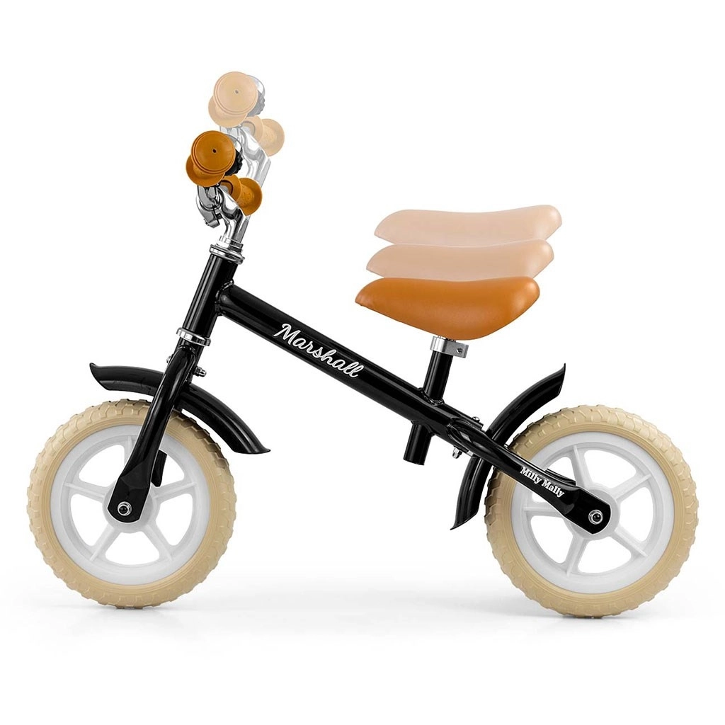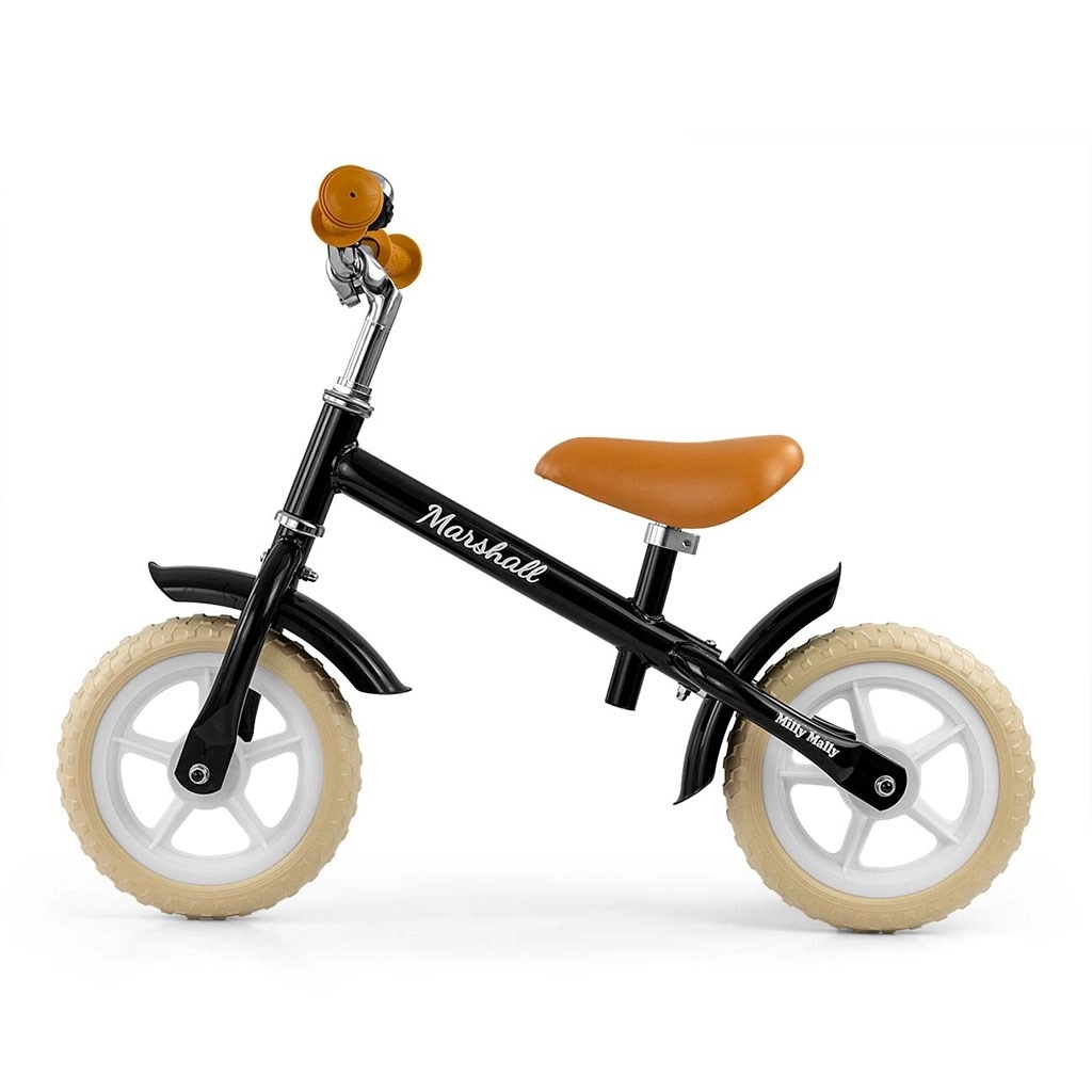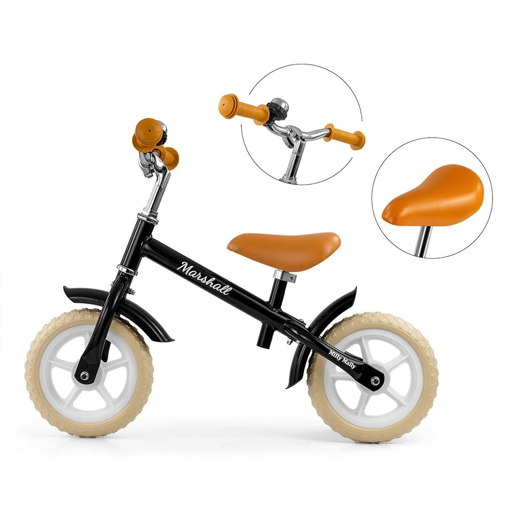 Poganjalec Milly Mally Marshall Black je idealna izbira za prve korake do vožnje s kolesom. Zaradi zasnove brez pedal se otrok osredotoči na ohranjanje ravnotežja in pravilno usmerjanje. Lahek, a vzdržljiv jeklen okvir zagotavlja dolgo življenjsko dobo in udobje pri vsakodnevni uporabi.