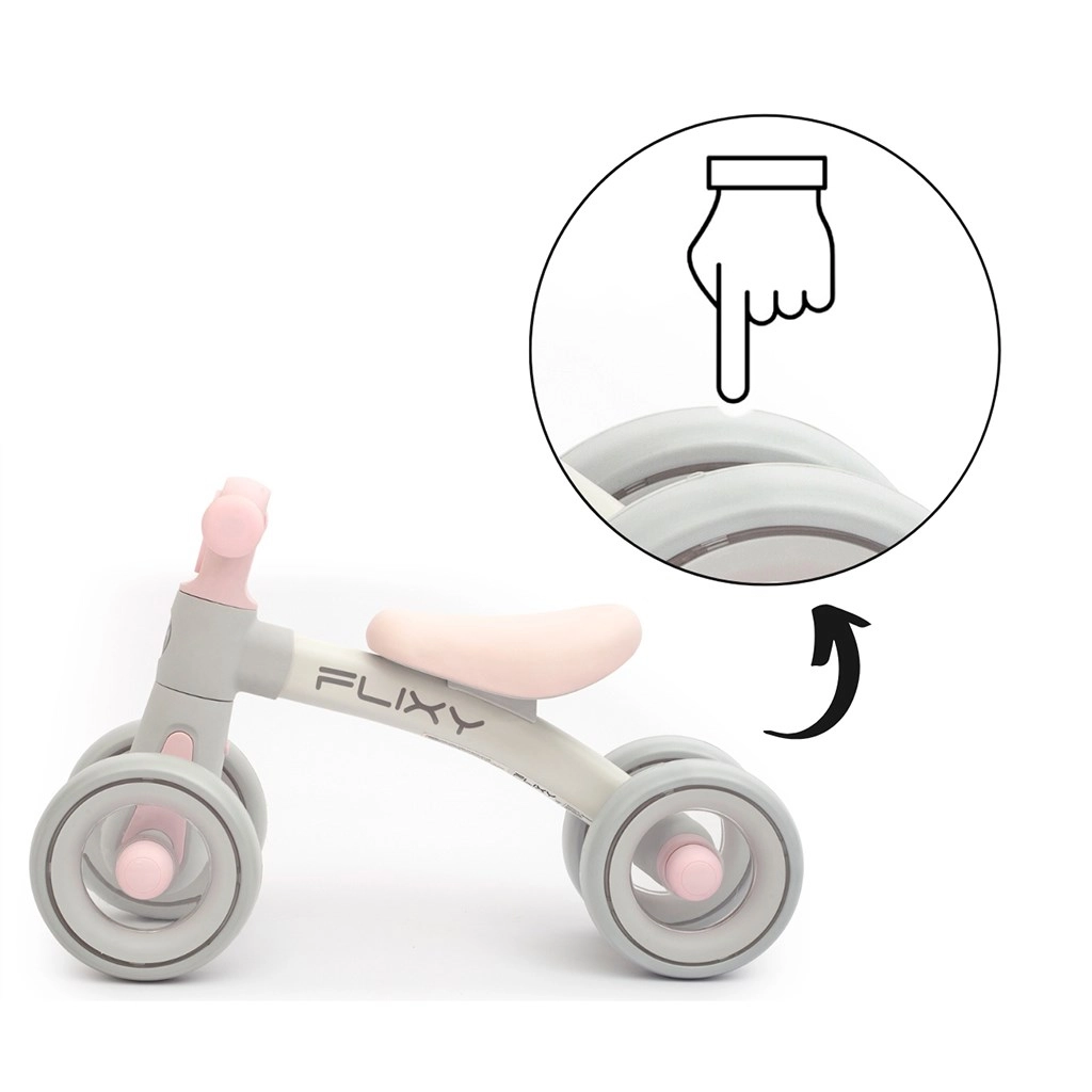 Podarite svojemu otroku varne prve korake na kolesih. Poganjalec FLIXY s 4 kolesi nudi maksimalno stabilnost, podpira razvoj ravnotežja in koordinacije ter z LED lučko v krmilu na igriv način spodbuja gibanje. Lahka zasnova olajša upravljanje tako otrokom kot staršem.