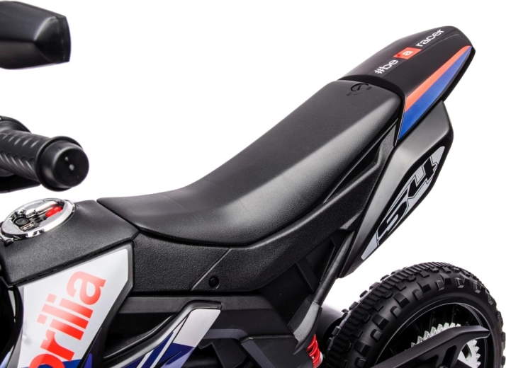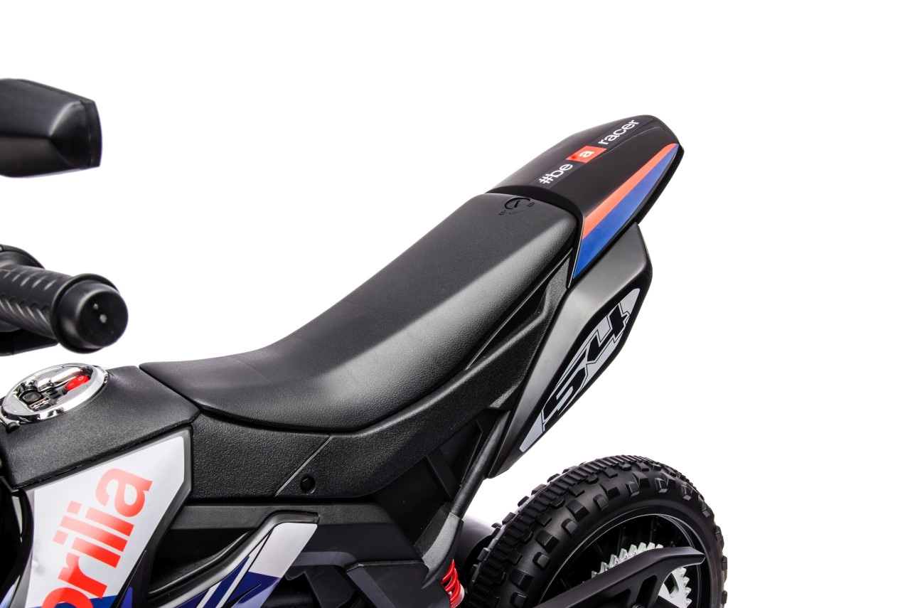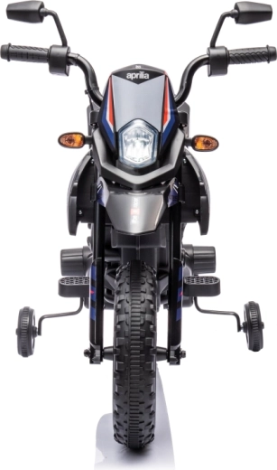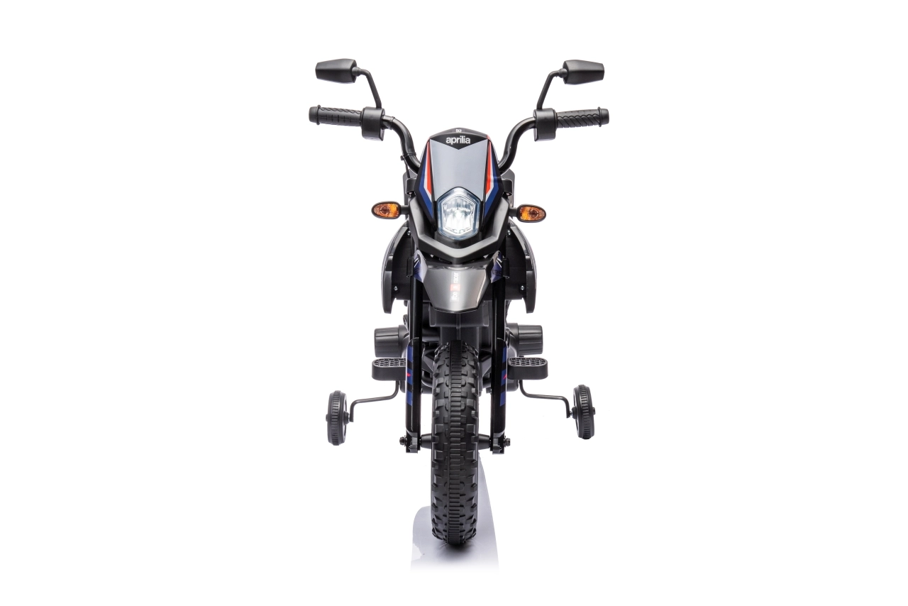 Otroški električni motor APRILIA RX v modri barvi združuje realističen terenski dizajn z varnostnimi funkcijami za začetnike. Dva motorja 35 W in akumulator 12 V / 7 Ah omogočata gladek zagon in dovolj moči, medtem ko stranska koleščka pomagajo ohranjati stabilnost.