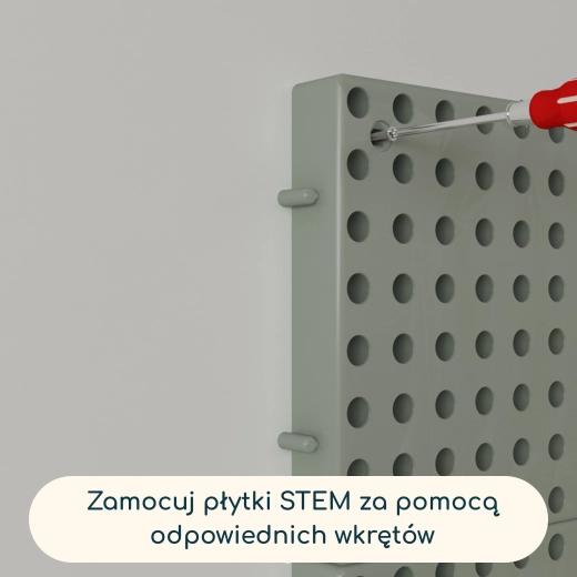 Stena je kompatibilna s STEM elementi (zatiči, oblike, zobniki, vijaki), zato lahko dejavnosti prilagodite starosti in spretnostim. Idealna za vrtce, šole, vrtove in izobraževalne cone, kjer spodbuja timsko delo, samostojnost in učenje skozi izkušnje.