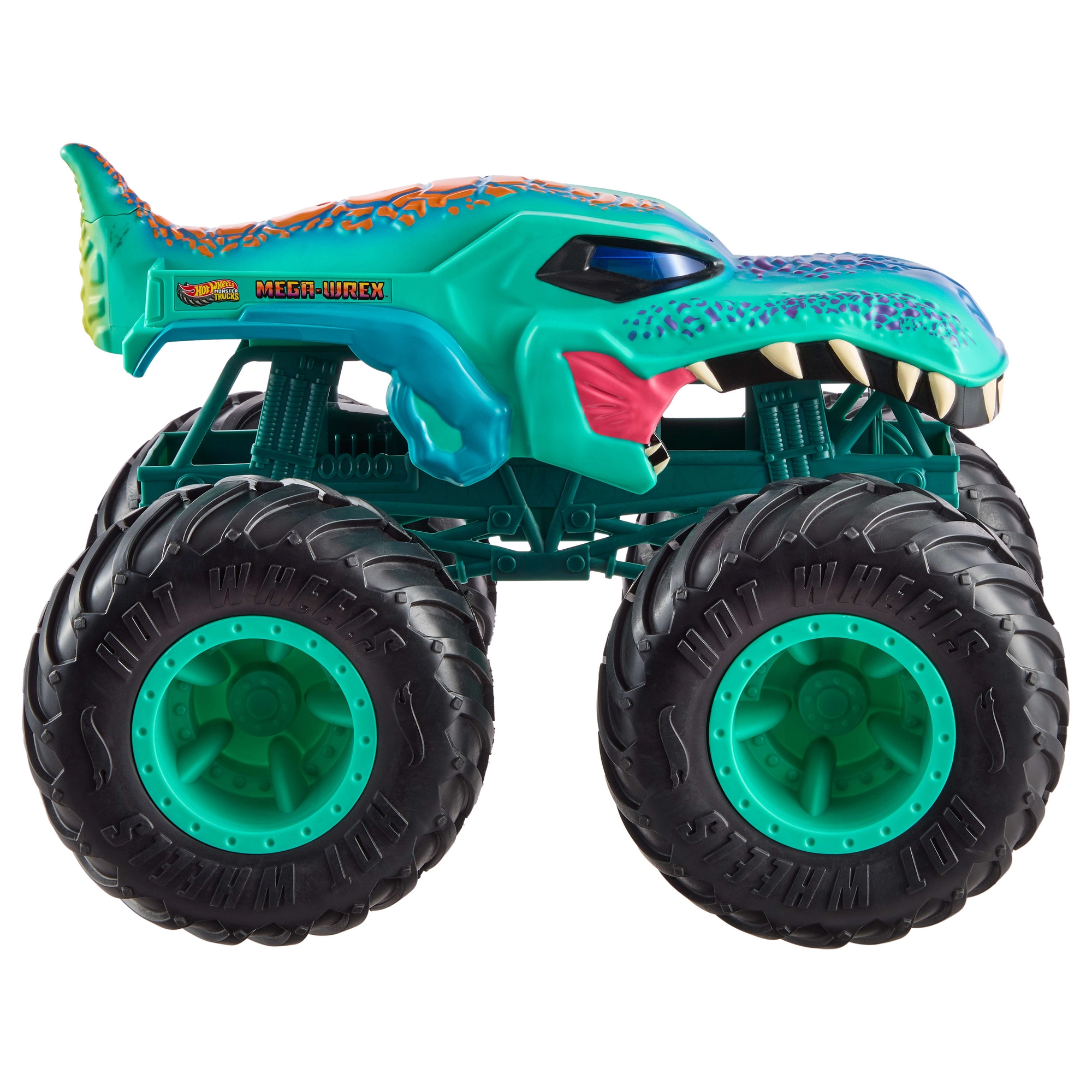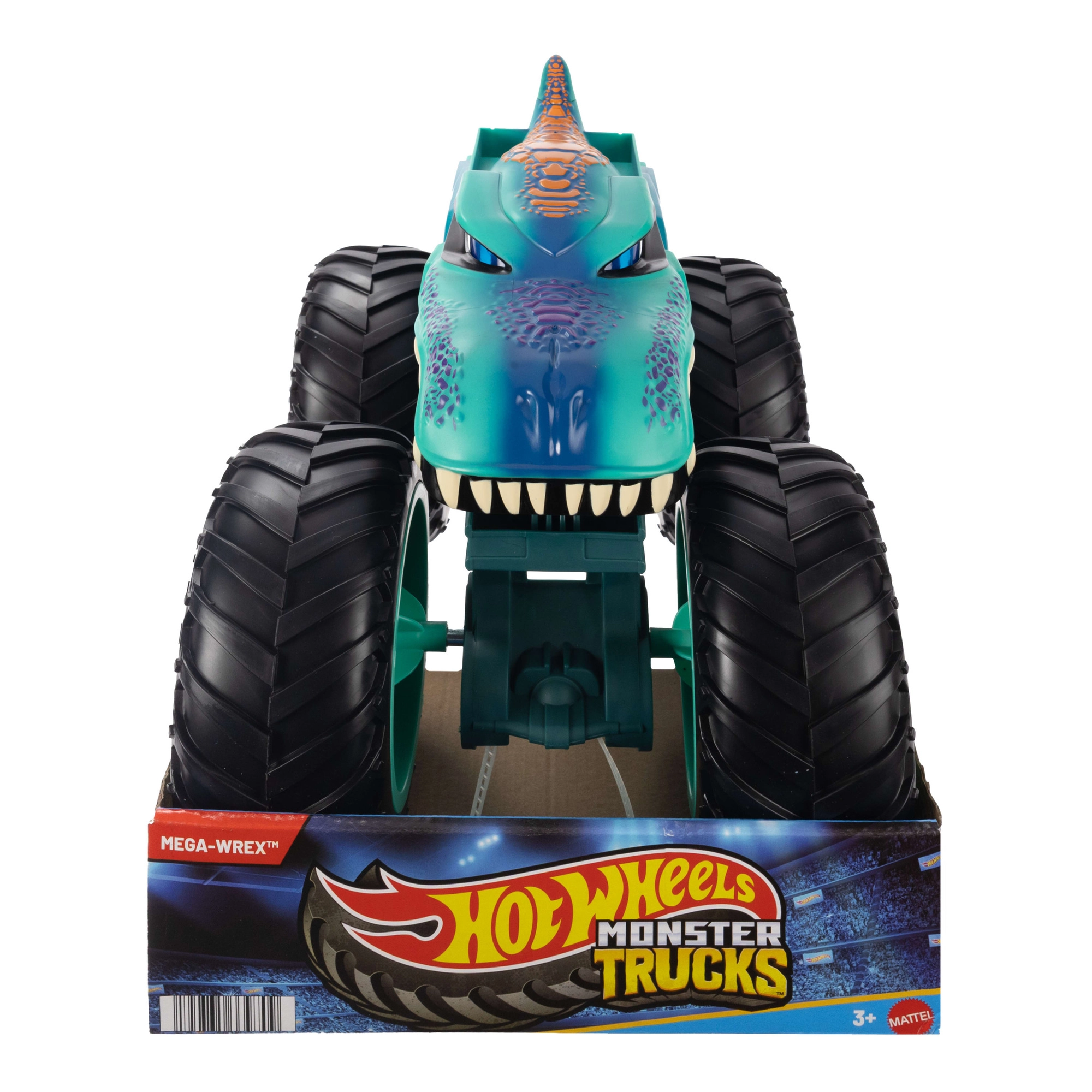 Ikonični dinozavrski tovornjak Mega‑Wrex prinaša obilico akcije. Masivno podvozje, velika kolesa videza gume in podrobna »zobata« karoserija zagotavljajo, da bo vsak dvoboj in skok na improvizirani progi nepozaben. Odlično podpira razvoj domišljije in fine motorike.