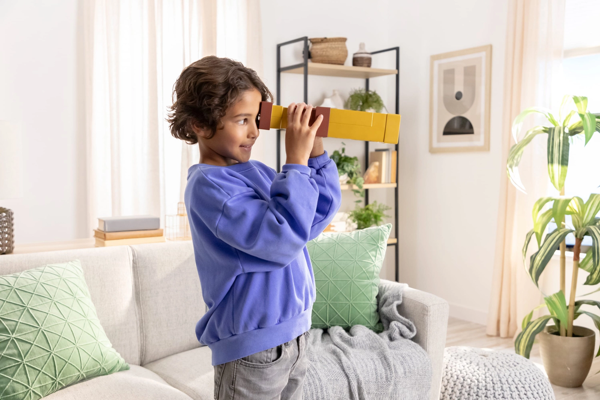 Posebna leča spremeni okolico v blokovni prikaz, ki spominja na zaslon sveta Minecraft – idealno za tematsko igro in raziskovanje.