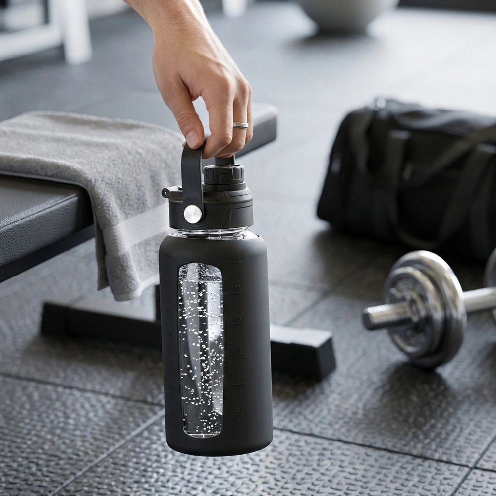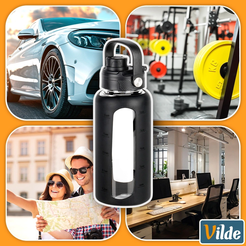 Ostanite hidrirani v slogu in z dobrim pregledom. Steklenička iz odpornega borosilikatnega stekla prenese temperature od -20 °C do 120 °C, zato je idealna za vodo, limonade in ledene čaje. Silikonski ovitek poveča odpornost, izboljša oprijem in zahvaljujoč prosojnemu okencu omogoča udoben nadzor nad nivojem tekočine in branje merilnika.
